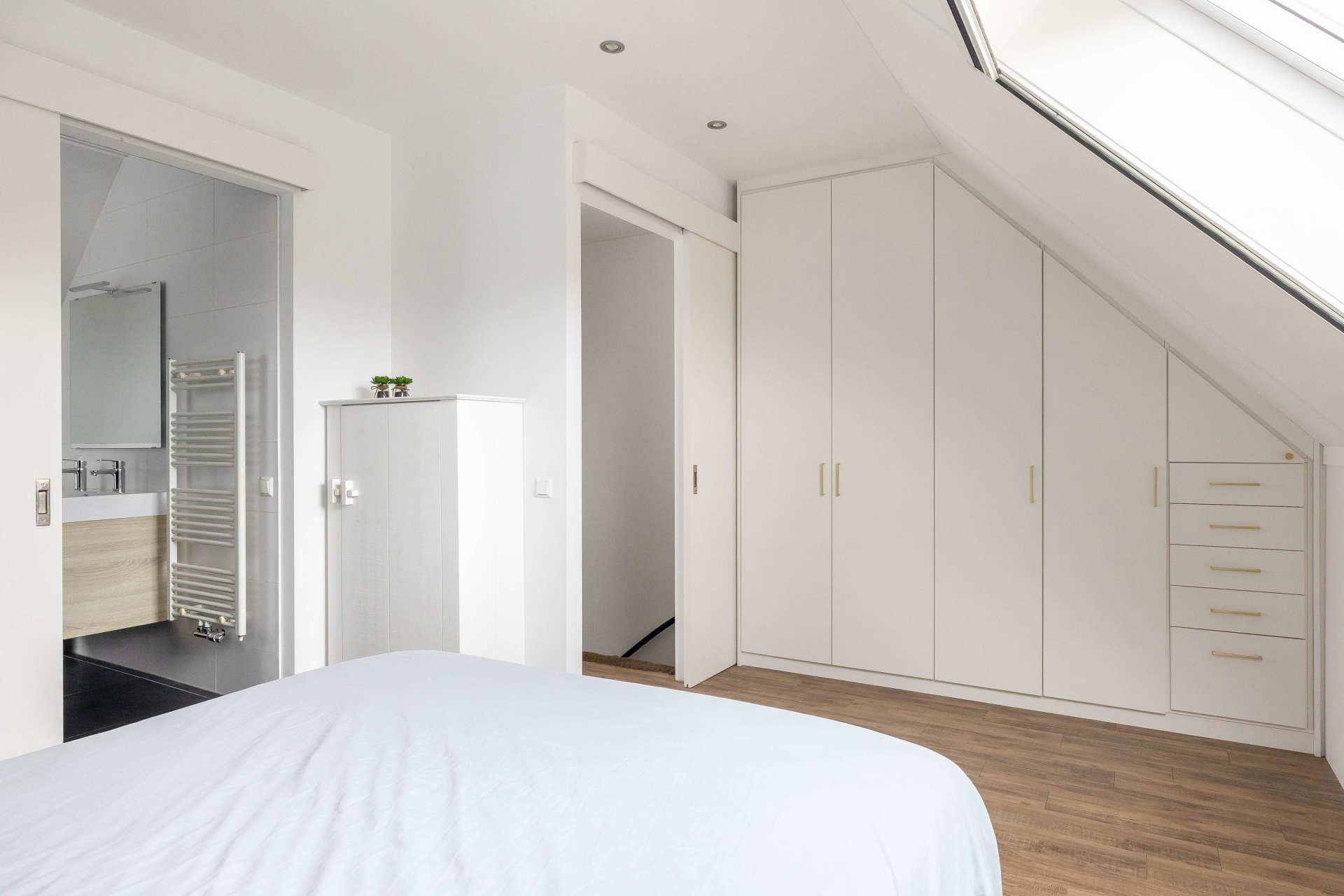 Aan de voorzijde ligt de strak afgewerkte, halfopen keuken met een fijne erker. De keuken is voorzien van diverse inbouwapparatuur, veel werkruimte en een doordachte opstelling. Hier kook je met plezier, met zicht op de rustige straat. De eerste verdieping telt 3 slaapkamers, waarvan 2 bijzonder ruim zijn. De grootste kamer aan de achterzijde biedt voldoende plek voor een groot bed en een kastenwand, ideaal als master bedroom. De andere 2 kamers zijn riant en perfect als kinder-of werkkamer. Op deze verdieping is ook de eerste moderne badkamer te vinden, met inloopdouche, dubbele wastafel en toilet.