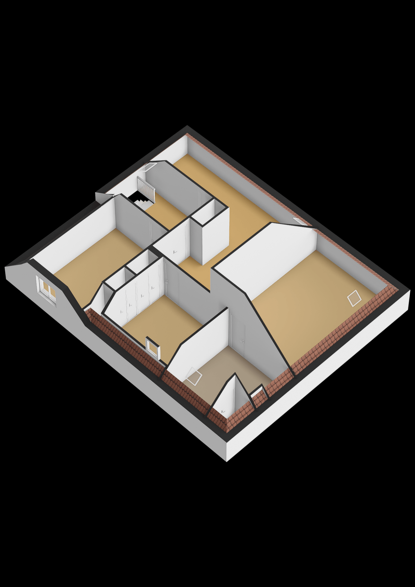 De kamer aan de achterzijde beschikt over een deur richting achterliggende dakterras op het zuidwesten.