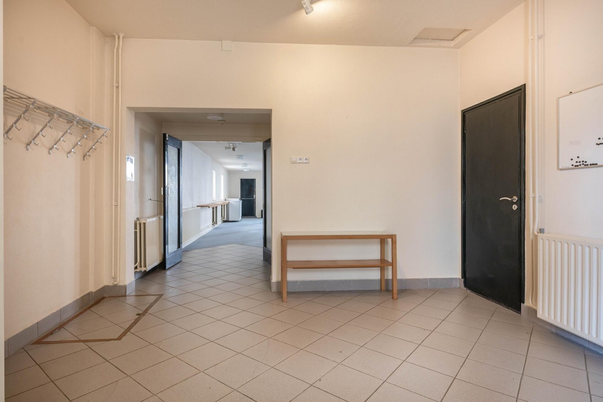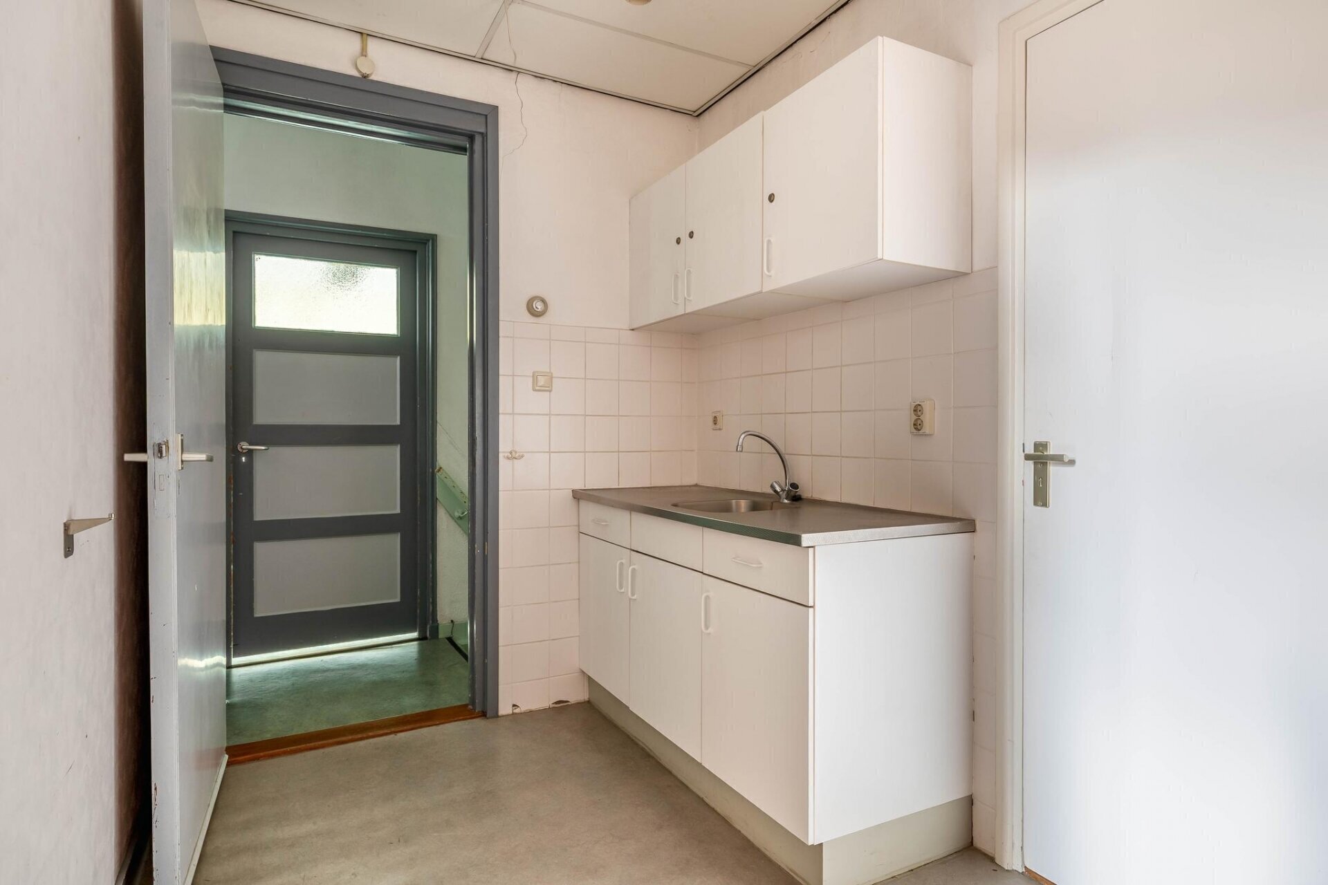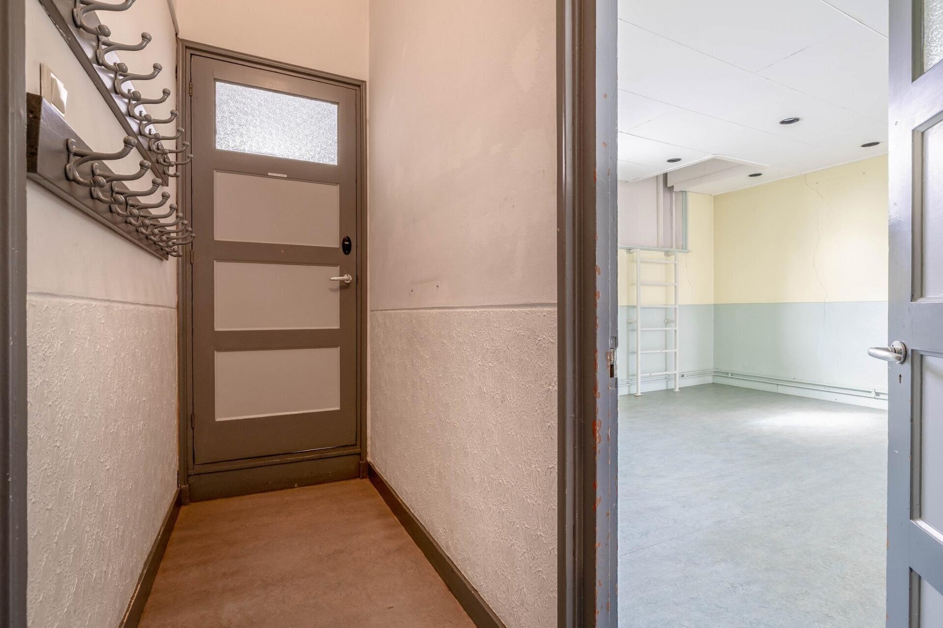 Vanuit de hal is er toegang tot de multifunctionele ruimte aan de voorzijde van het pand welke is v.v. de meterkast en welke toegang geeft tot een bergportaal met deur richting straatzijde.