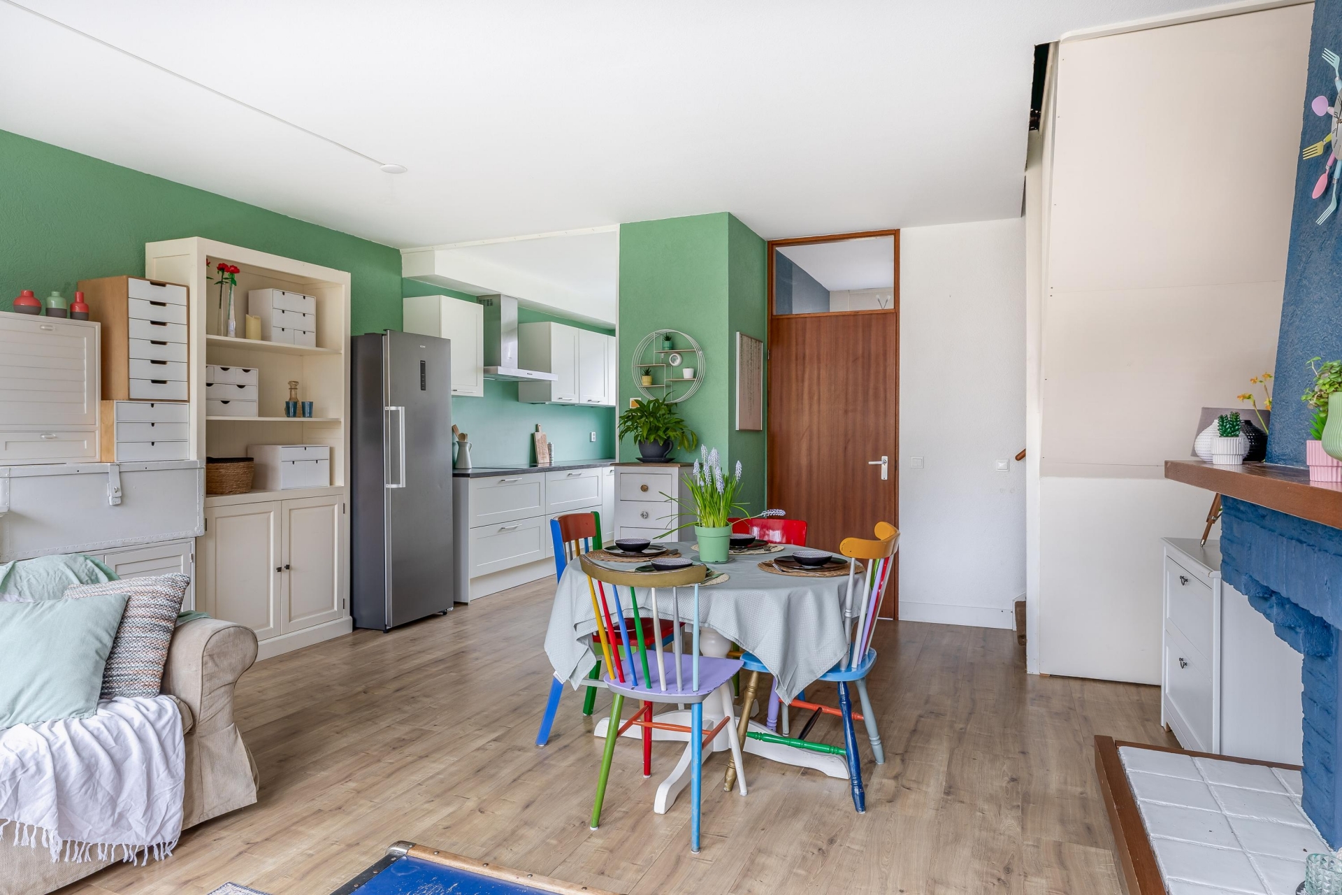 Er is volop ruimte voor een royale zithoek en een grote eettafel. De basis is netjes en verzorgd. Wil je een andere kleur op de muur of de binnendeuren moderniseren? Dan kun je hier met relatief eenvoudige ingrepen een heel eigentijdse uitstraling creëren.