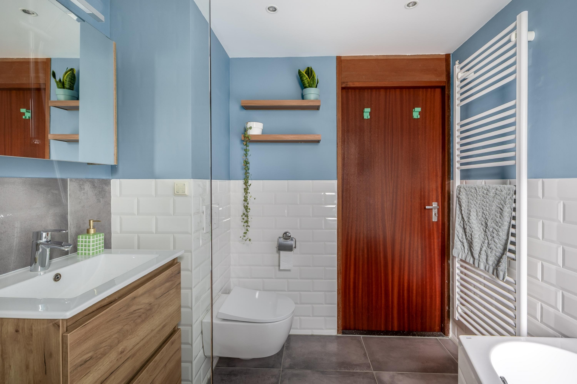 Ook de badkamer is in 2020 compleet vernieuwd. Deze is modern afgewerkt met een ruime inloopdouche, ligbad en wastafelmeubel. Het toilet is eveneens netjes uitgevoerd.