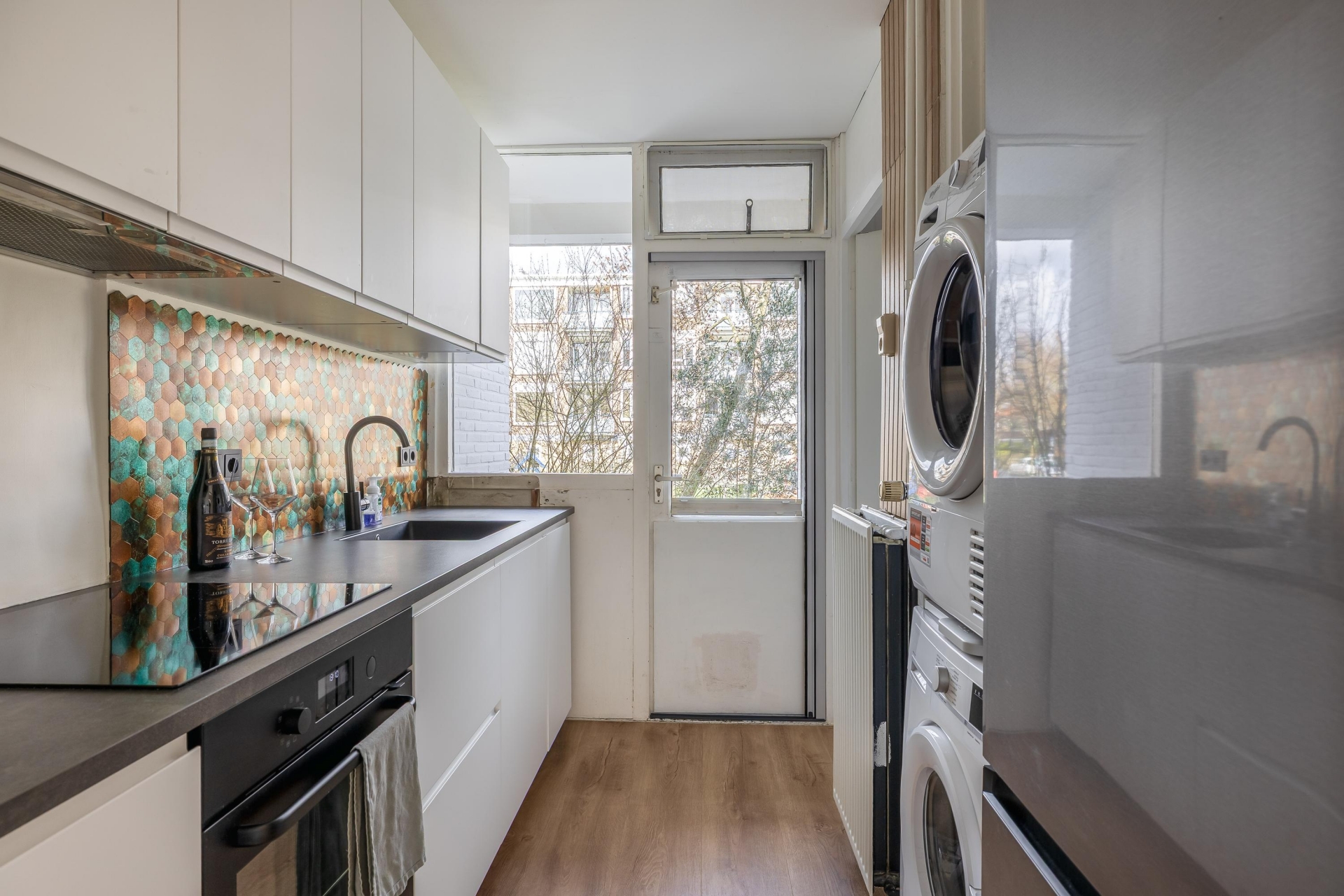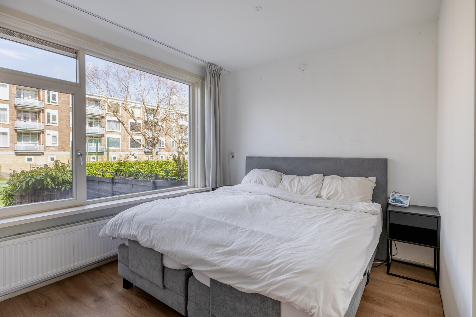 Vanuit de keuken loop je zo de ruime tuin (34m²) in, die is gelegen op het noordwesten. Een fijne plek om te ontspannen en te genieten van de middag- en avondzon. Extra leuk: direct achter de tuin is een speeltuin, ideaal voor (klein)kinderen! Wil je in de ochtend al genieten van de zon met een kop koffie? Aan de voorzijde is een zonnig balkon.