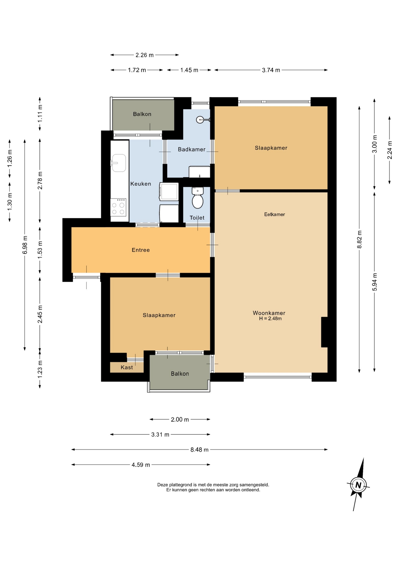 “Deze informatie is door ons met de nodige zorgvuldigheid samengesteld. Onzerzijds wordt echter geen enkele aansprakelijkheid aanvaard voor enige onvolledigheid, onjuistheid of anderszins, dan wel de gevolgen daarvan. Alle opgegeven maten en oppervlakten zijn indicatief.”