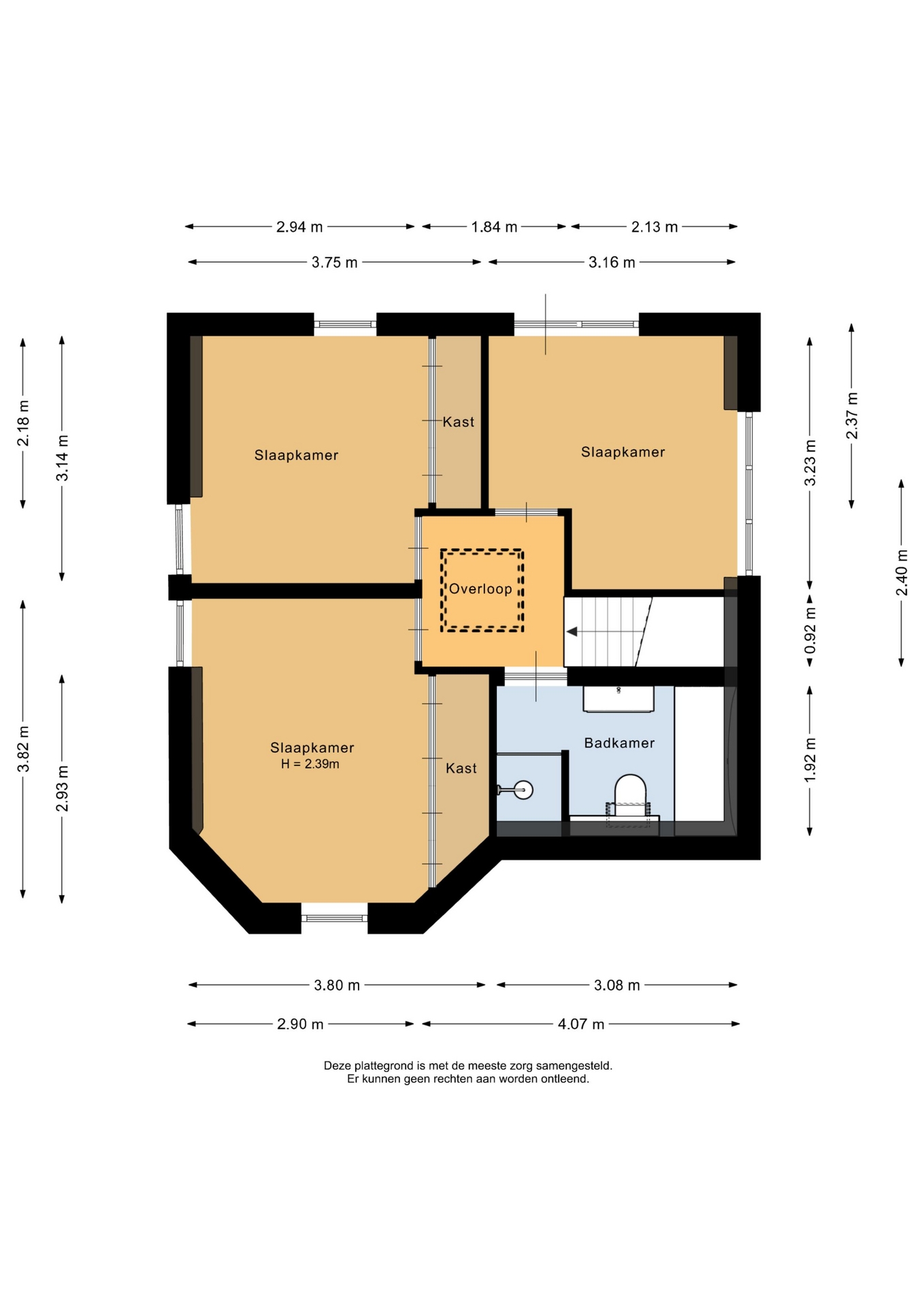 “Deze informatie is door ons met de nodige zorgvuldigheid samengesteld. Onzerzijds wordt echter geen enkele aansprakelijkheid aanvaard voor enige onvolledigheid, onjuistheid of anderszins, dan wel de gevolgen daarvan. Alle opgegeven maten en oppervlakten zijn indicatief.”