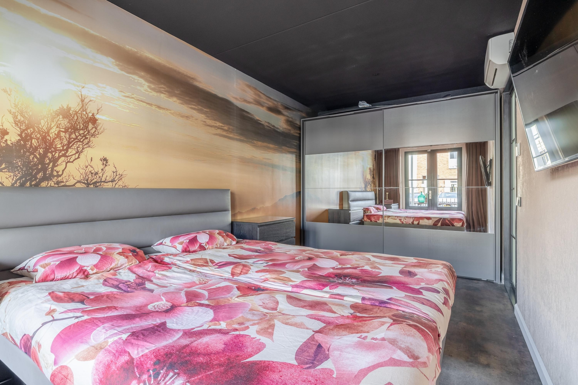 Bij binnenkomst valt direct de strakke afwerking en de fijne indeling op. De woonkamer is gelegen aan de achterzijde, met een sfeervolle erker en vrij uitzicht over het water. Dit is echt een prettige ruimte waar je gemakkelijk een royale zithoek kwijt kunt. Grote raampartijen zorgen voor veel lichtinval en een fijne verbinding met buiten. Aan de voorzijde bevindt zich de moderne halfopen keuken en toegang tot het ruime balkon. Deze is uitgevoerd in een stijlvolle kleurstelling en voorzien van diverse inbouwapparatuur. Een plek waar je met plezier kookt, maar ook waar je gezellig aan kunt schuiven met vrienden of familie.