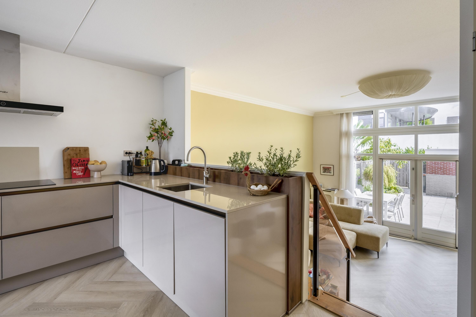 De woonkeuken is op een verhoogd niveau geplaatst en vernieuwd in 2024. Deze is strak, modern en van alle gemakken voorzien: inbouwapparatuur, veel werkruimte en plek voor een eethoek. Perfect voor wie graag kookt en gasten ontvangt. De lichte kleurstelling en de nette afwerking maken het plaatje compleet.