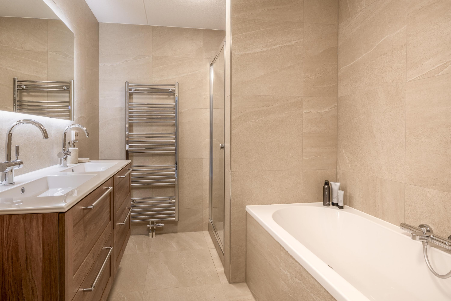 De badkamer is in 2024 volledig vernieuwd en straalt rust en comfort uit. Met een ruime douche, modern wastafelmeubel en fraai tegelwerk is dit een fijne plek om de dag te beginnen of juist ontspannen af te sluiten. Ook is er een separaat toilet, vernieuwd in dezelfde stijl.