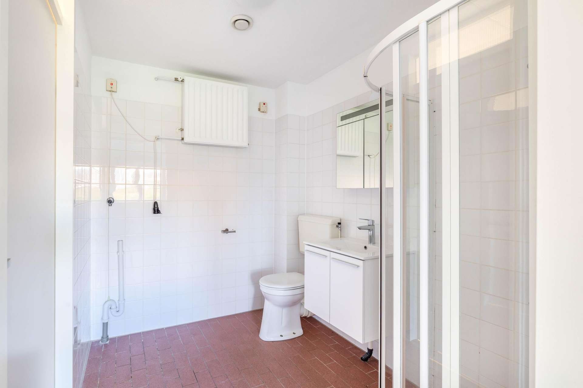 - De badkamer is voorzien van een toilet, wastafel en douche. Tevens is hier de opstelplaats voor de wasapparatuur;