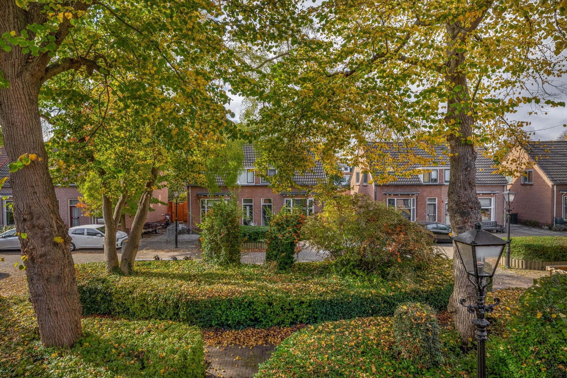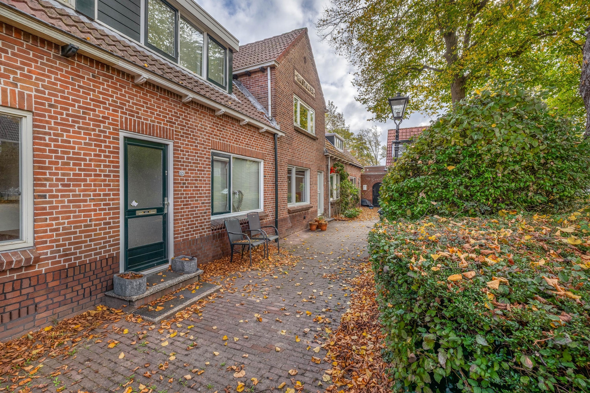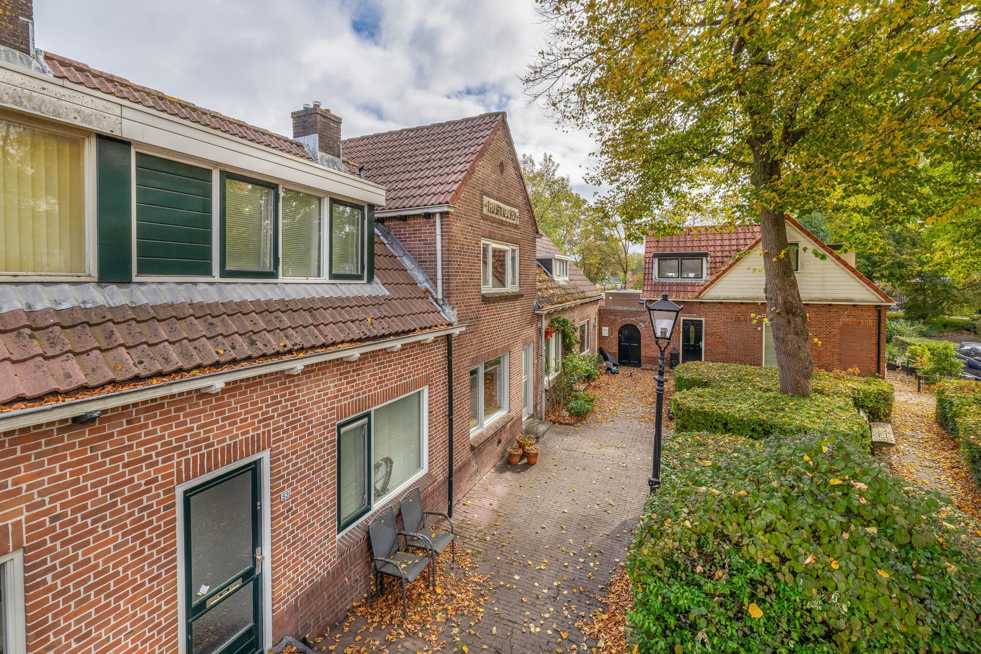 De straat waarin de woning ligt ademt de sfeer van vroeger, met authentieke gevels, een klassieke lantaarnpaal voor de deur en veel groen rondom. Het geheel zorgt voor een charmant en gemoedelijk straatbeeld waar je je snel thuis zult voelen.