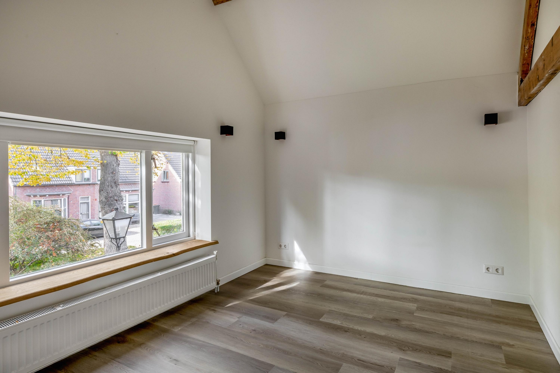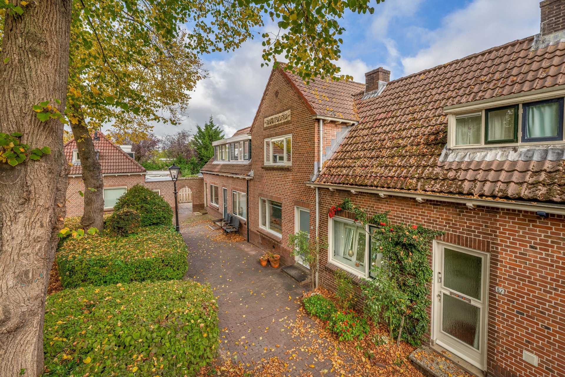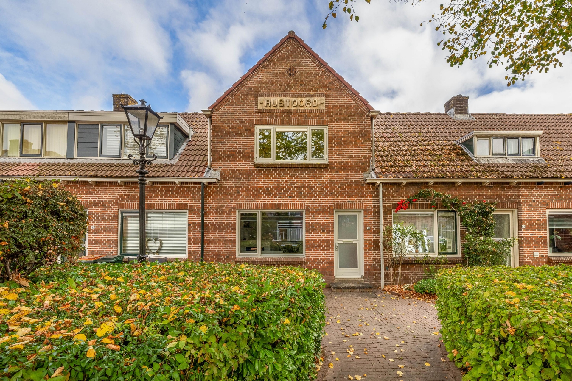 De straat waarin de woning ligt ademt de sfeer van vroeger, met authentieke gevels, een klassieke lantaarnpaal voor de deur en veel groen rondom. Het geheel zorgt voor een charmant en gemoedelijk straatbeeld waar je je snel thuis zult voelen.