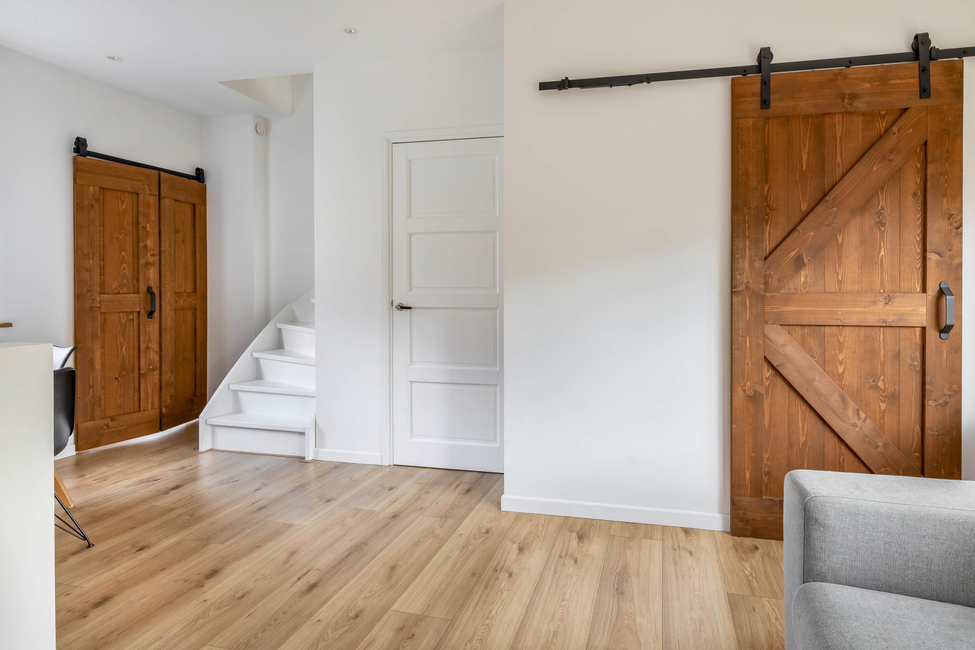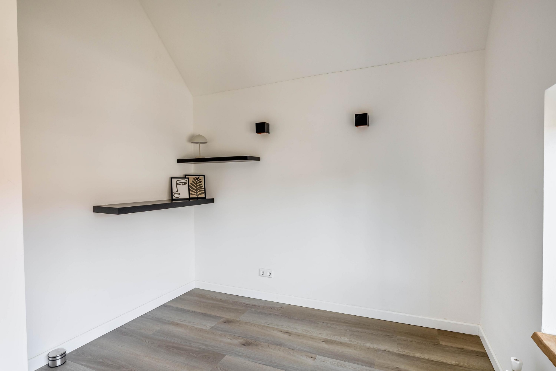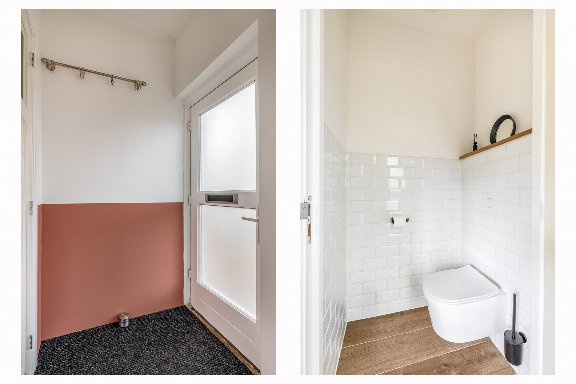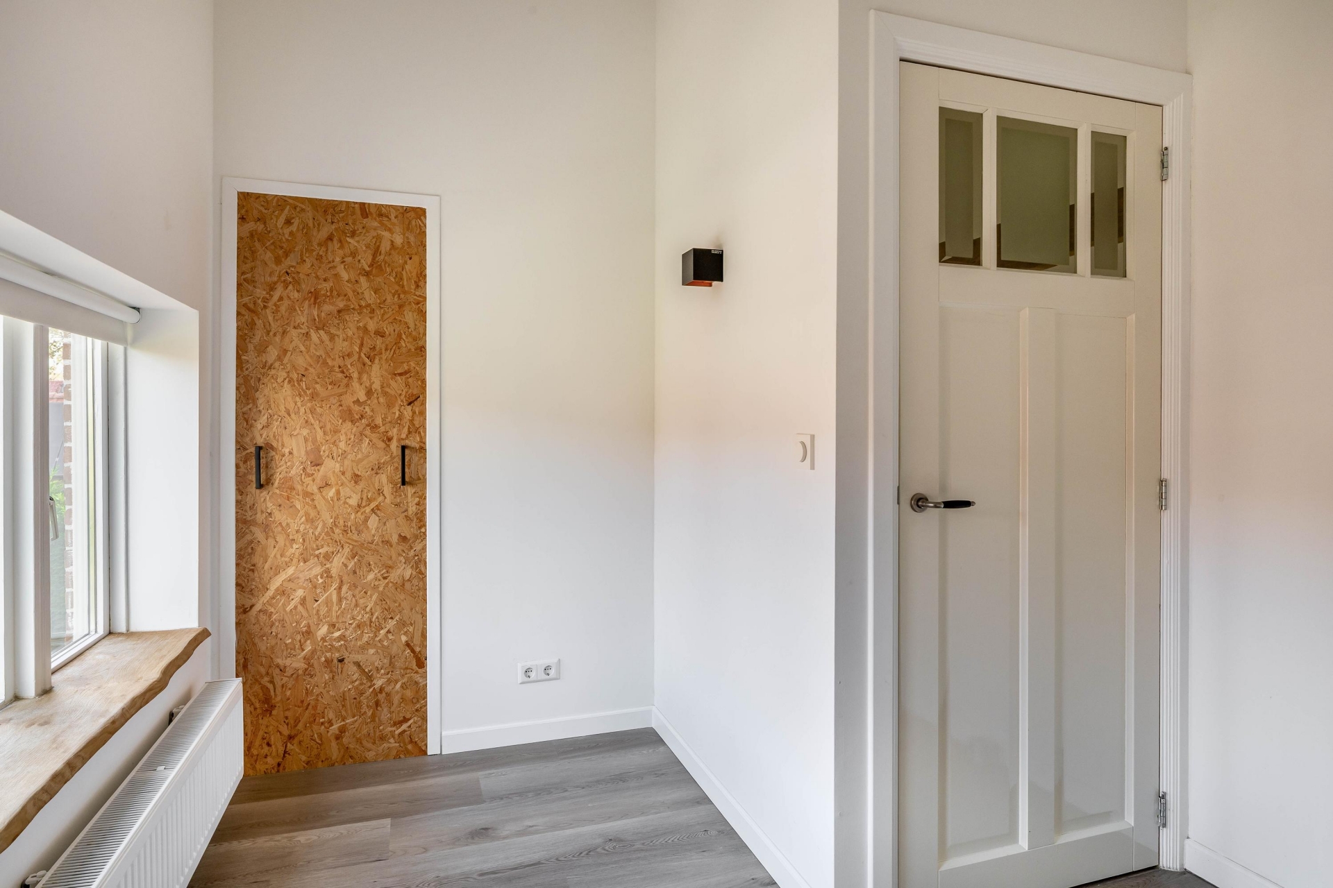 De badkamer is recent vernieuwd en stijlvol afgewerkt met een inloopdouche, wastafelmeubel en moderne tegels. Ook de aansluiting voor wasmachine en droger is hier netjes verwerkt. De combinatie van lichte kleuren, houten accenten en moderne details zorgt voor een frisse, eigentijdse uitstraling.