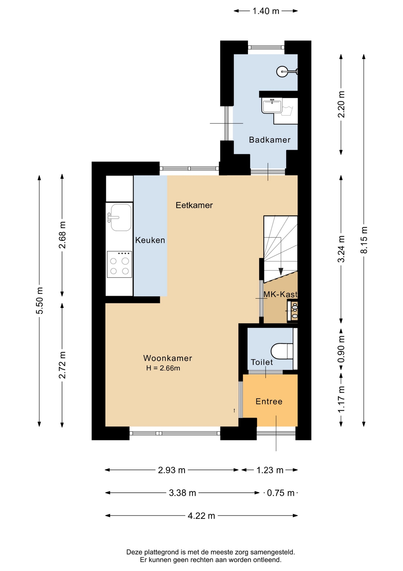 “Deze informatie is door ons met de nodige zorgvuldigheid samengesteld. Onzerzijds wordt echter geen enkele aansprakelijkheid aanvaard voor enige onvolledigheid, onjuistheid of anderszins, dan wel de gevolgen daarvan. Alle opgegeven maten en oppervlakten zijn indicatief.”