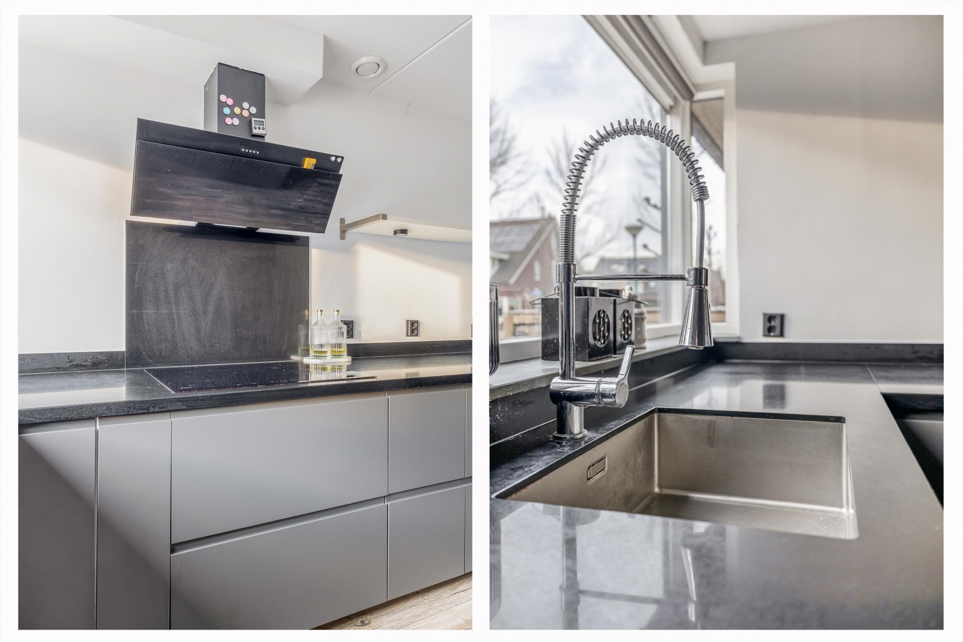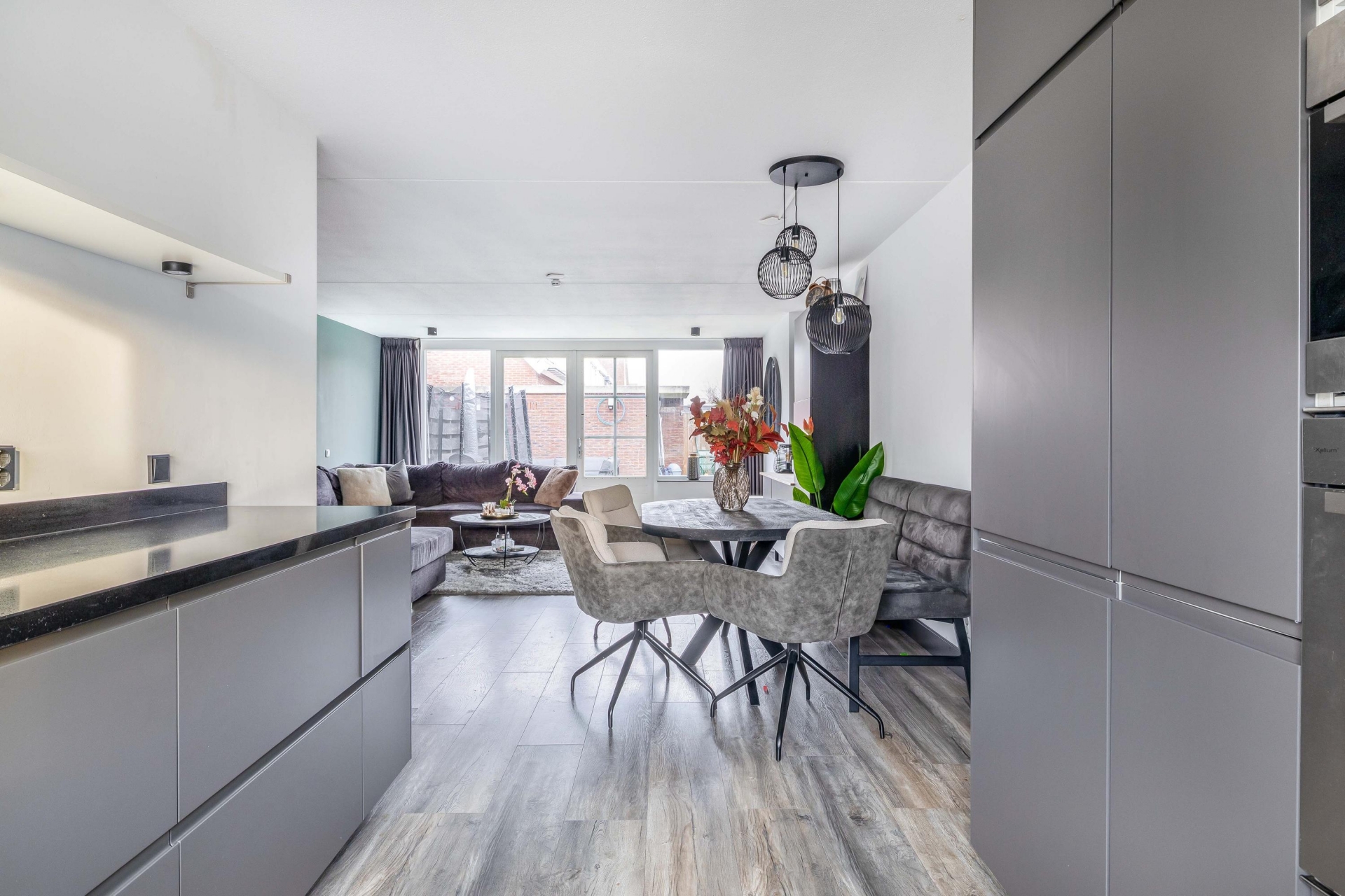 De keuken is recent vernieuwd en heeft een strakke, eigentijdse uitstraling met donkere fronten en een praktisch werkblad. Er is voldoende kastruimte en de indeling is overzichtelijk, ideaal voor wie graag kookt maar ook houdt van gemak. Alles is netjes afgewerkt en sluit perfect aan bij de rest van het huis.