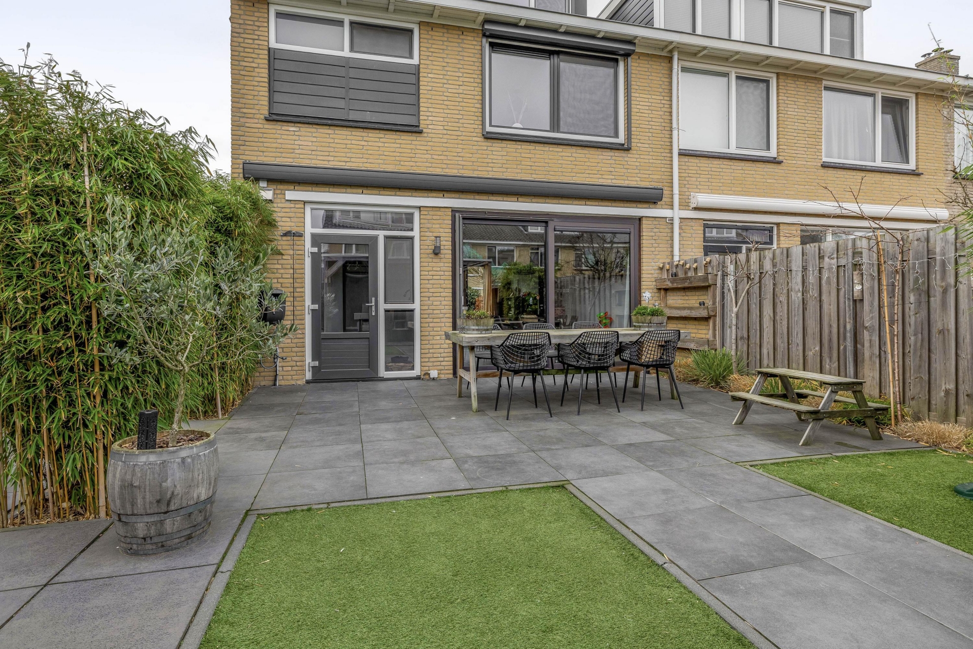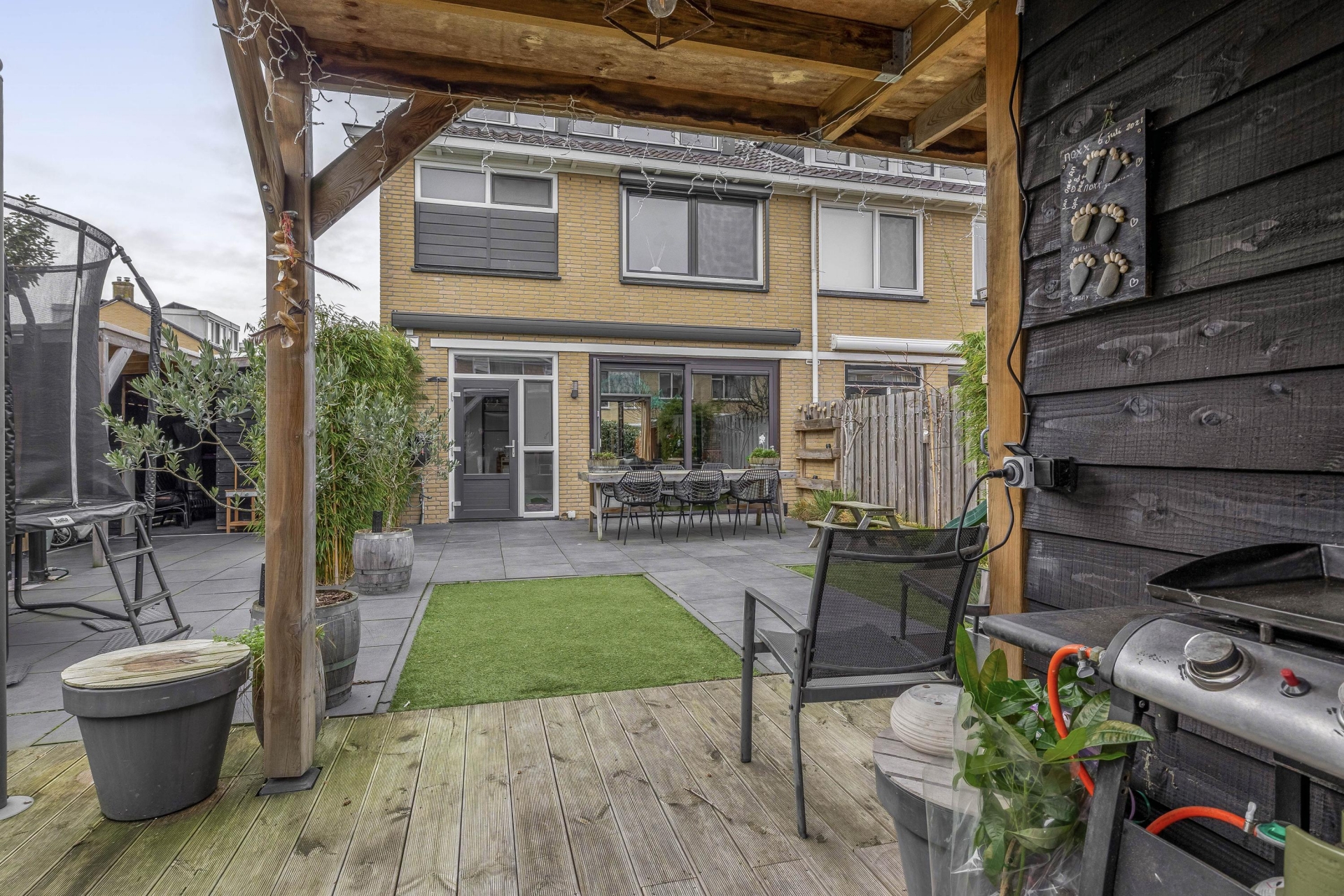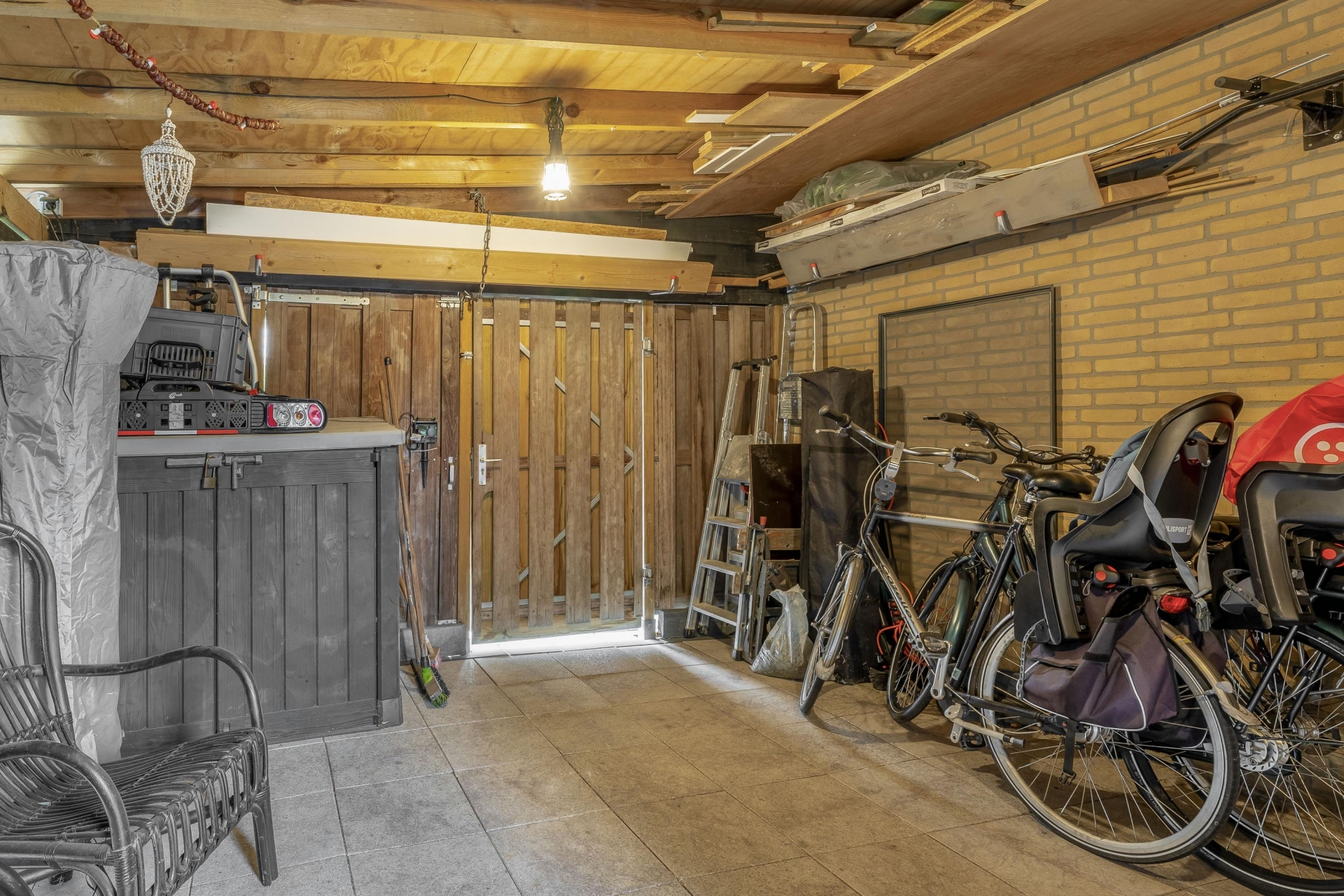 De achtertuin ligt op het oosten, maar door de hoekligging kun je vanaf de ochtend tot later in de avond genieten van de zon. De tuin is verzorgd aangelegd met terras, groen en een houten geïsoleerde berging met overkapping achterin: een heerlijke plek om buiten te eten, te borrelen of de kinderen te laten spelen. Naast het huis, in het verlengde van de oprit, bevindt zich een carport met 2 openslaande deuren welke verschillende mogelijkheden biedt.