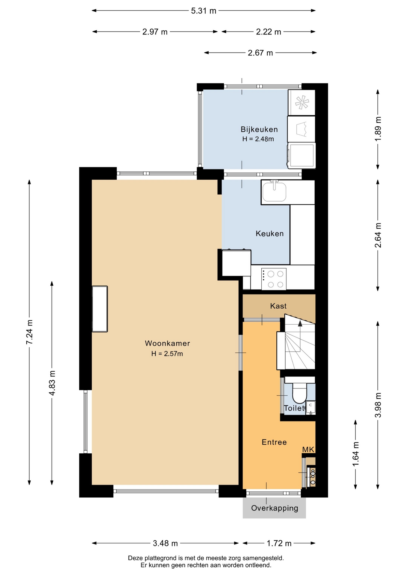 “Deze informatie is door ons met de nodige zorgvuldigheid samengesteld. Onzerzijds wordt echter geen enkele aansprakelijkheid aanvaard voor enige onvolledigheid, onjuistheid of anderszins, dan wel de gevolgen daarvan. Alle opgegeven maten en oppervlakten zijn indicatief.”