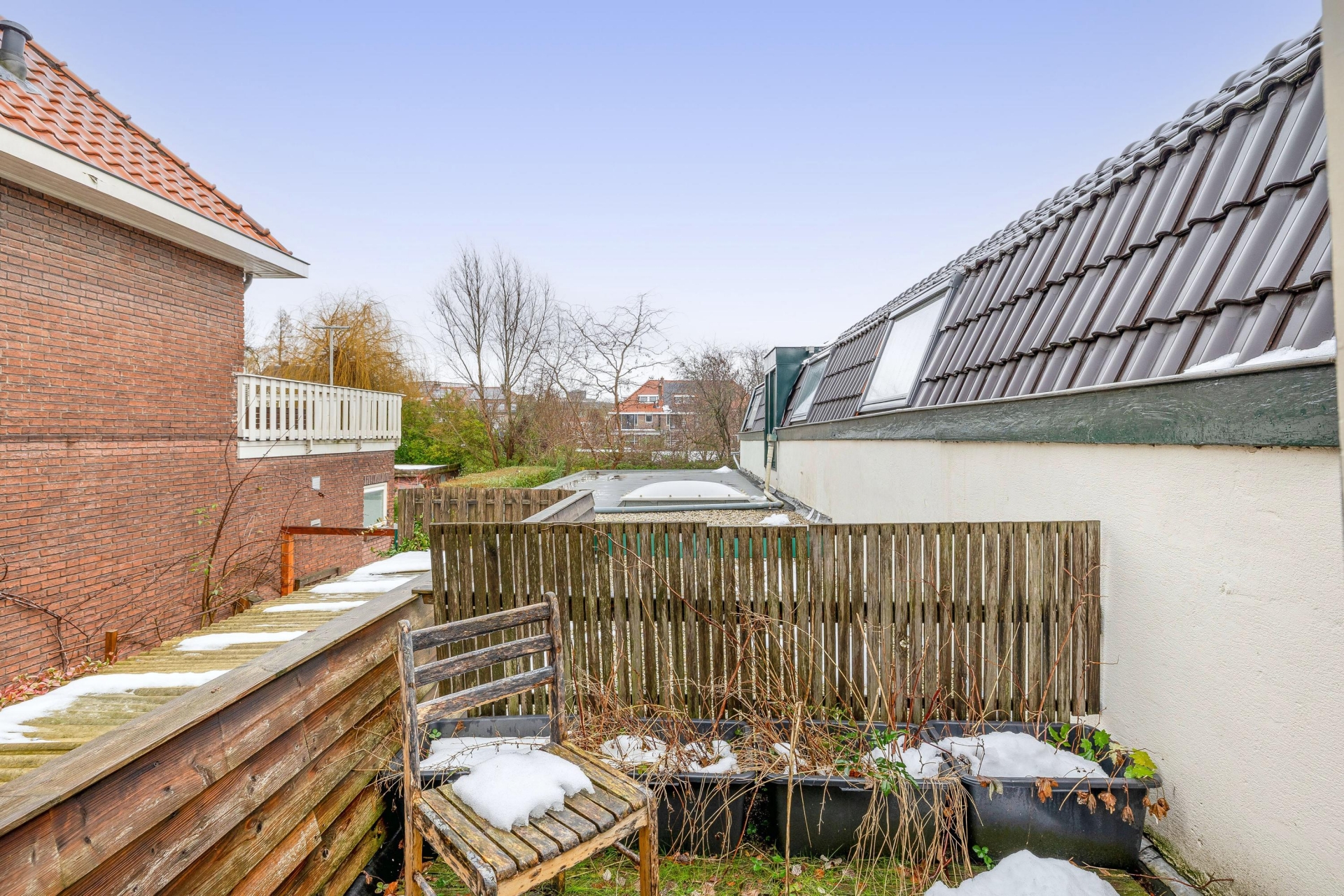 Buiten is het ook volop genieten: de beschutte patio/tuin is een heerlijke plek om te zitten. Dankzij de overkapping en het groen is dit een intieme en sfeervolle ruimte. Een fijne plek voor een kop koffie of een gezellige barbecue. Er is ook een balkon, ideaal om even buiten te kunnen zitten of de was te laten drogen.