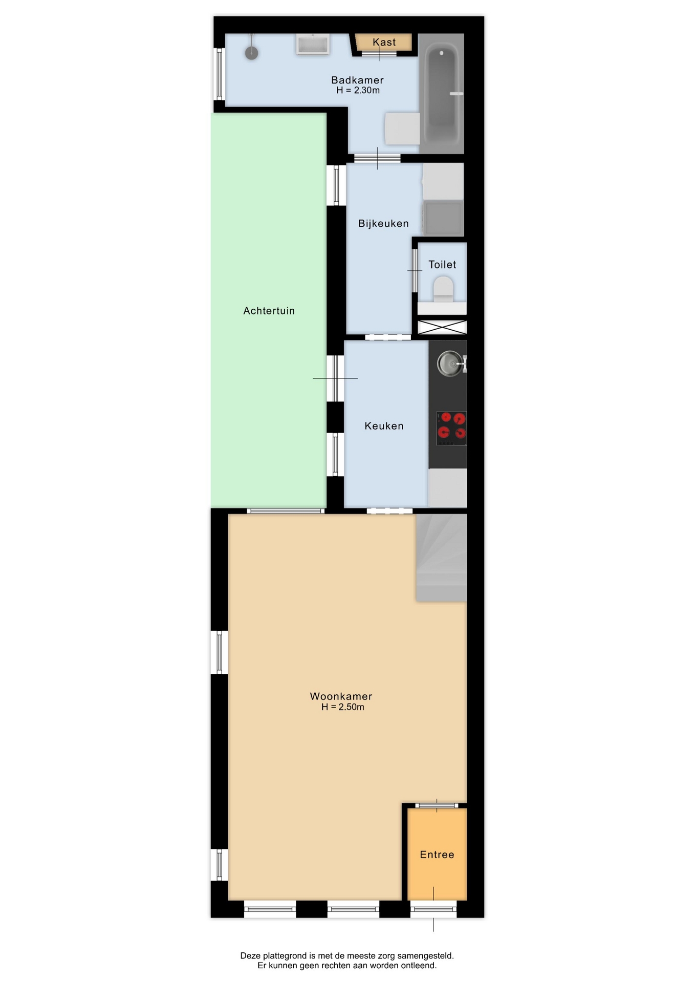 “Deze informatie is door ons met de nodige zorgvuldigheid samengesteld. Onzerzijds wordt echter geen enkele aansprakelijkheid aanvaard voor enige onvolledigheid, onjuistheid of anderszins, dan wel de gevolgen daarvan. Alle opgegeven maten en oppervlakten zijn indicatief.”