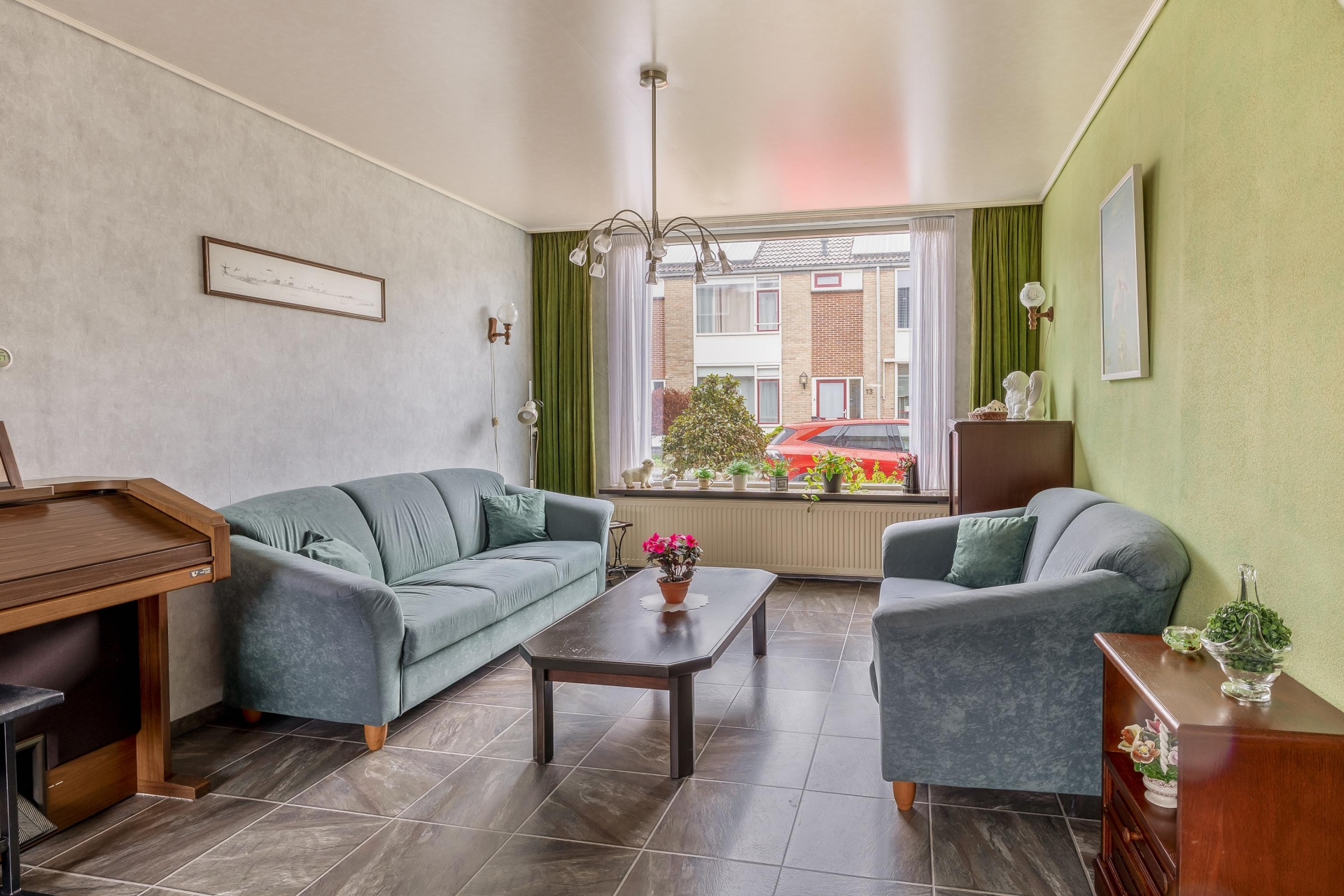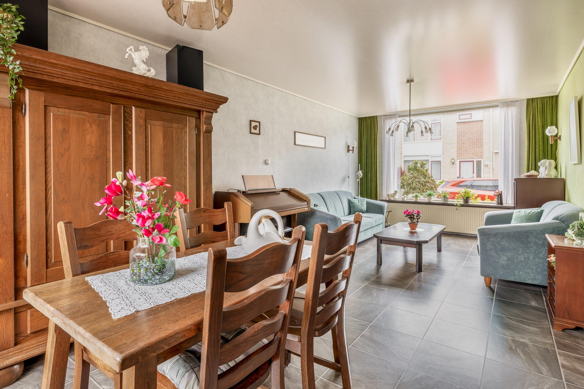 De woonkamer is een fijne plek om thuis te komen. Dankzij het grote raam aan de voorzijde komt er veel daglicht binnen. De ruimte is praktisch in te delen, met voldoende plek voor een comfortabele zithoek en een eettafel. De afwerking is netjes, met een verzorgde tegelvloer die doorloopt naar de hal en keuken, wat zorgt voor een rustige uitstraling.