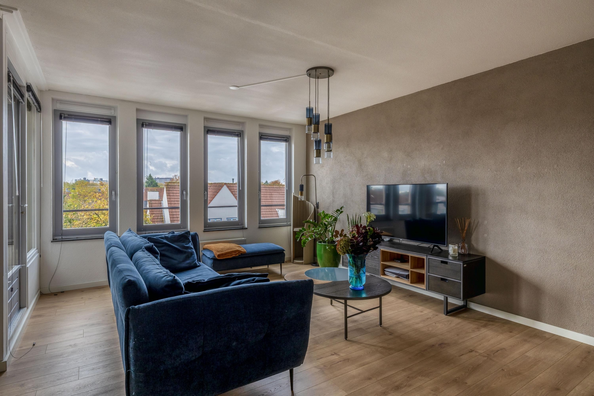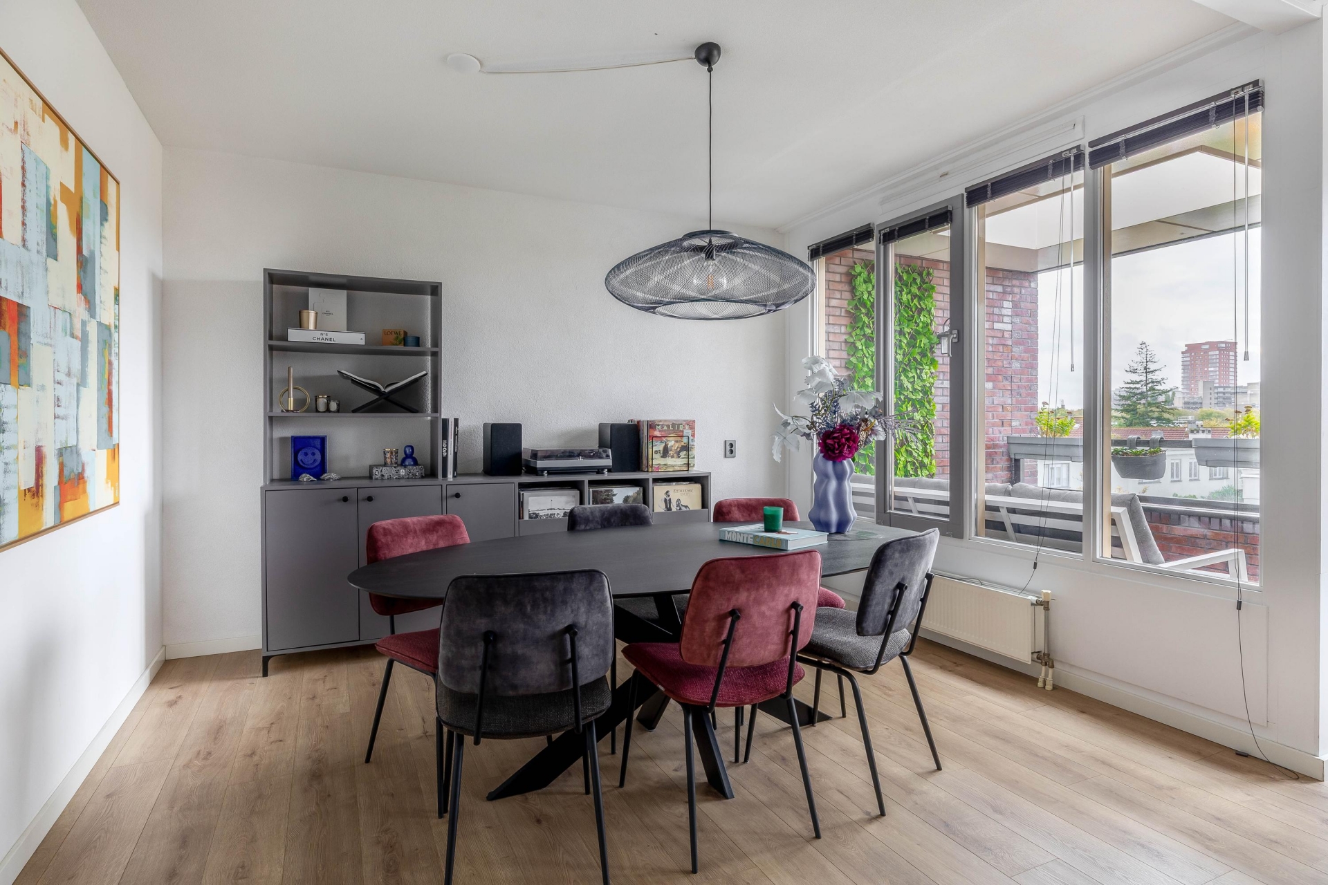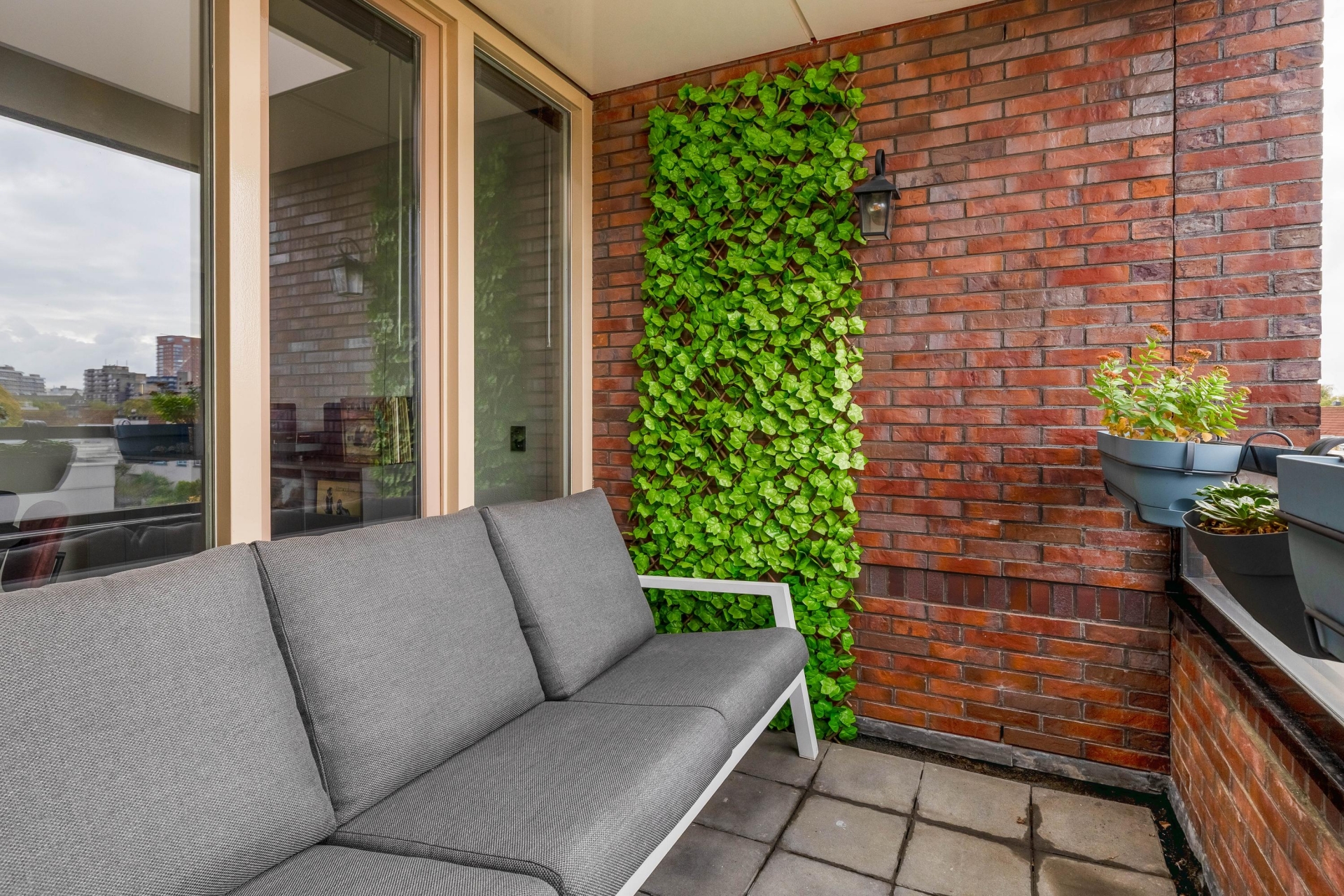 De woonkamer is heerlijk licht dankzij de vele ramen en over de volledige breedte gesitueerd. Vanuit de woonkamer loop je zo het overdekte balkon/terras op. Dankzij de ligging op het zuidwesten zit je hier in de middag en avond lekker in de zon. Het balkon is keurig aangekleed met plantenbakken en een verticale groene wand. Een fijne buitenplek waar je écht iets aan hebt.
