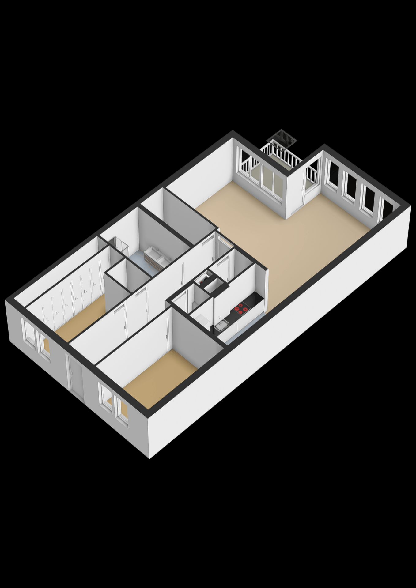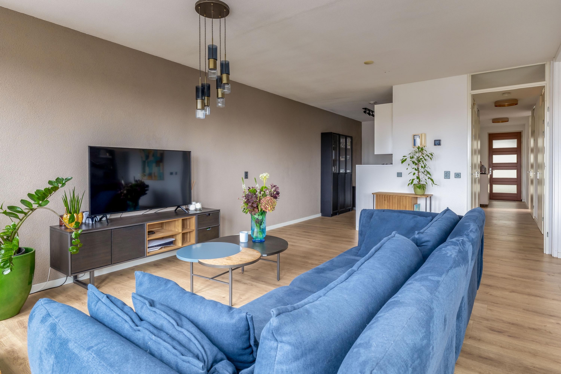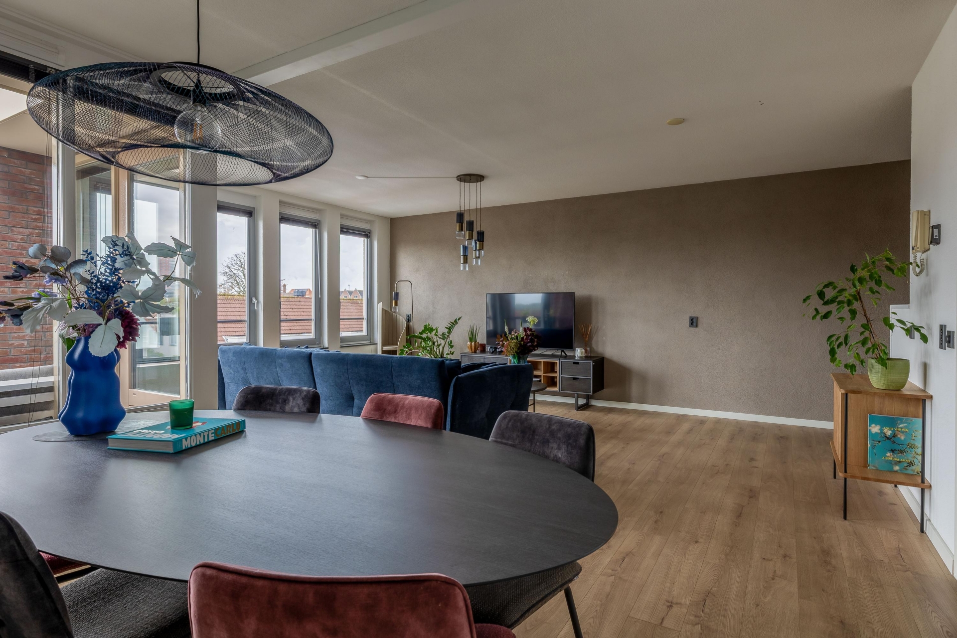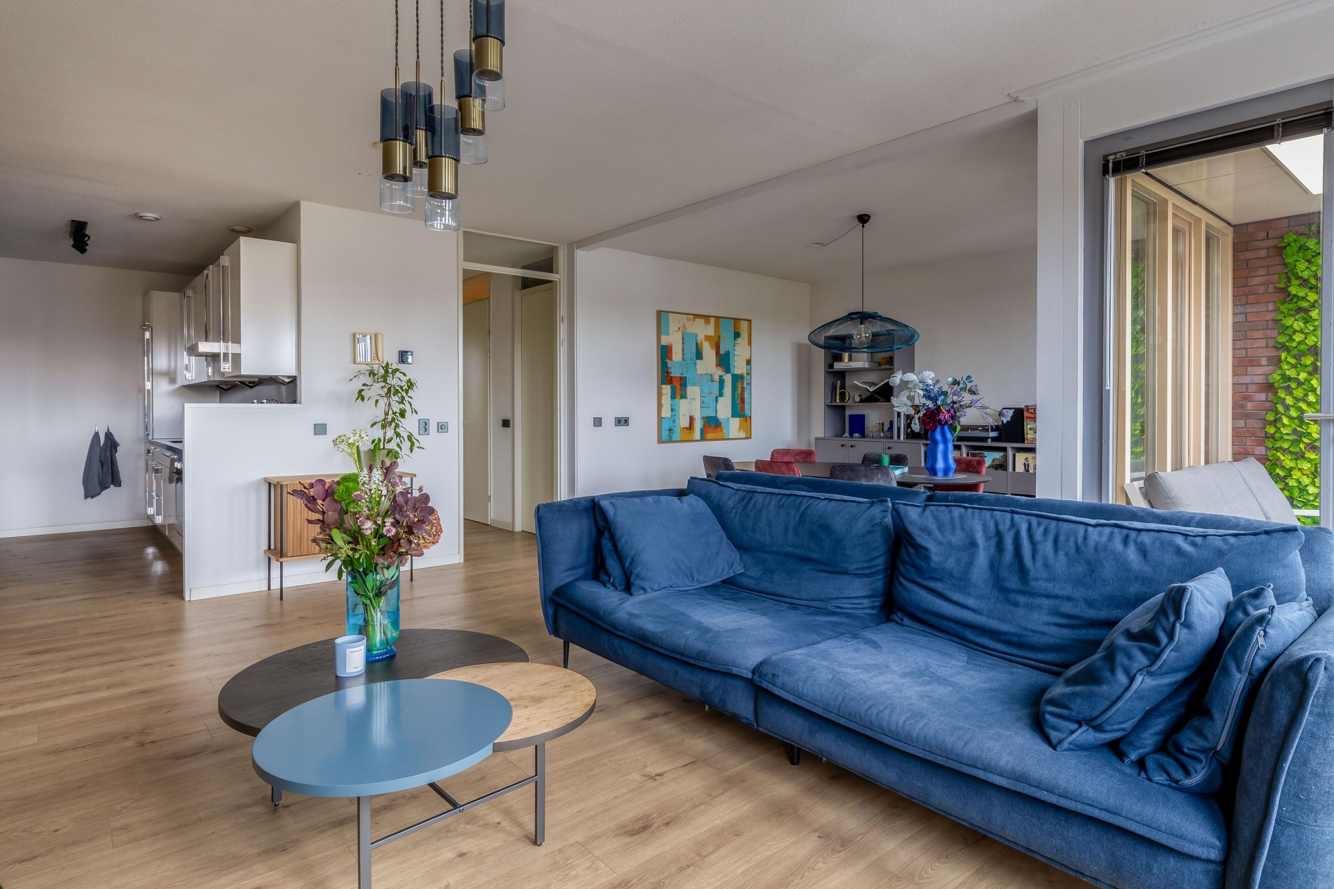 De woonkamer is heerlijk licht dankzij de vele ramen en over de volledige breedte gesitueerd. Vanuit de woonkamer loop je zo het overdekte balkon/terras op. Dankzij de ligging op het zuidwesten zit je hier in de middag en avond lekker in de zon. Het balkon is keurig aangekleed met plantenbakken en een verticale groene wand. Een fijne buitenplek waar je écht iets aan hebt.