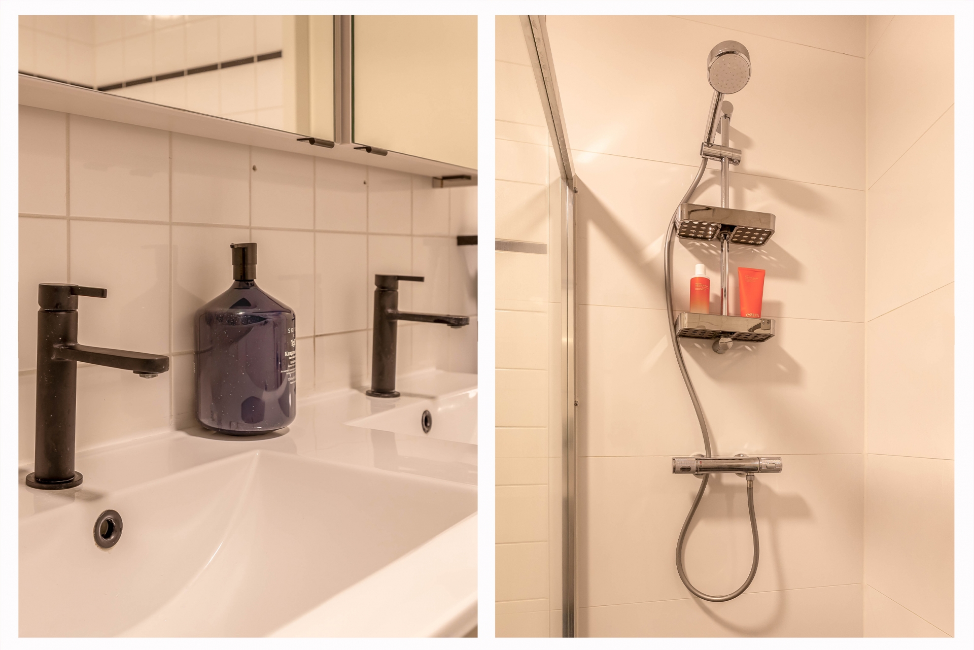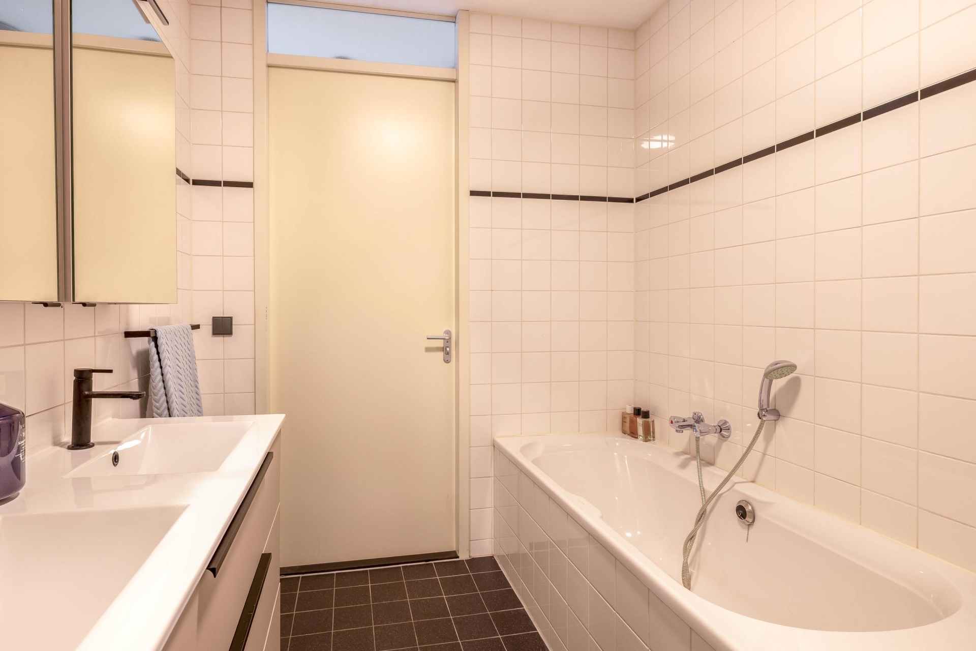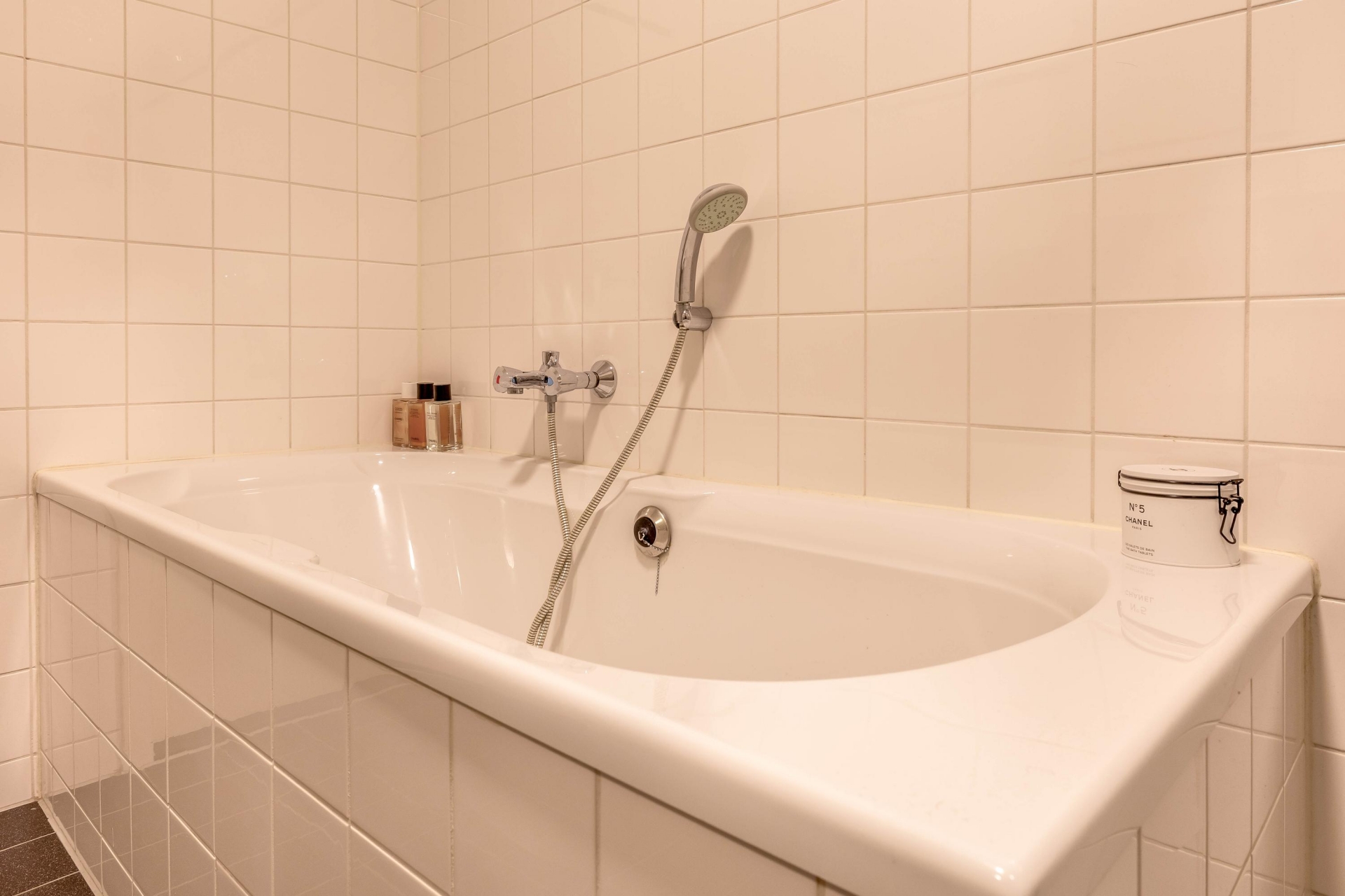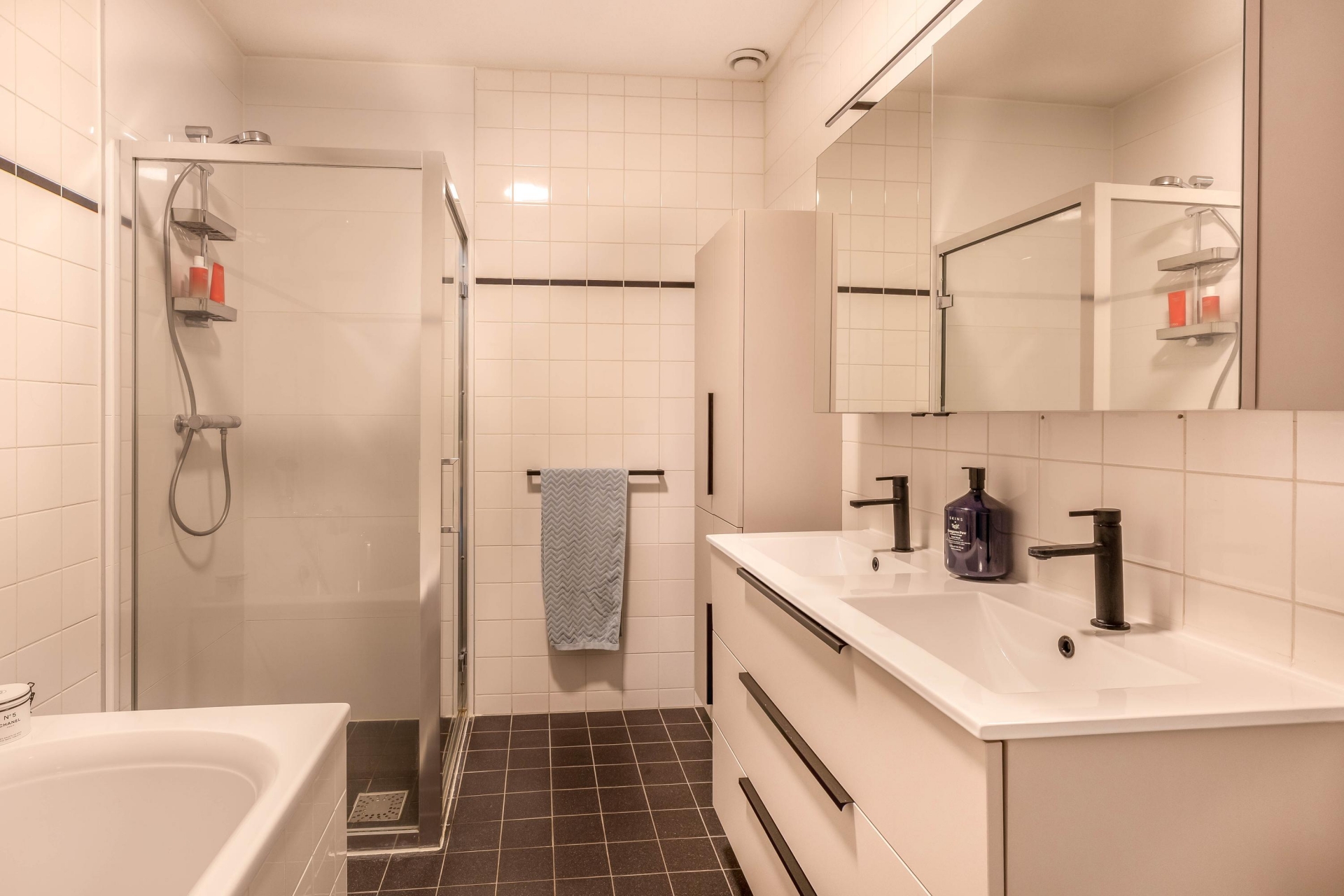 De badkamer is fris afgewerkt in lichte kleurstelling en beschikt over een ligbad, douche en wastafelmeubel (2024). Ook hier is de afwerking netjes, waardoor je direct kunt verhuizen zonder te klussen.