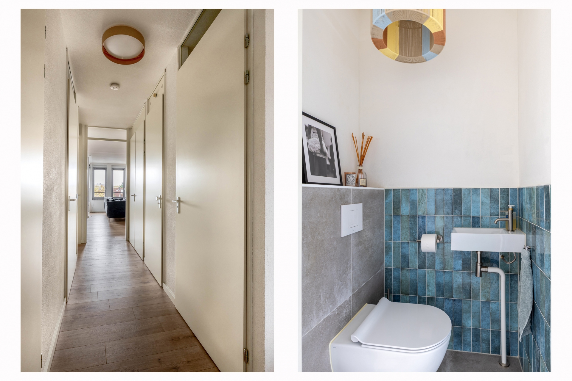 Binnenkomen doe je via het afgesloten portiek met lift of trap. Eenmaal op de tweede, tevens bovenste, verdieping stap je binnen in een frisse hal. Hier vind je onder andere het toilet (2022 vernieuwd), de meterkast, twee aparte bergruimtes en een wasruimte met opstelling voor de wasmachine en droger.