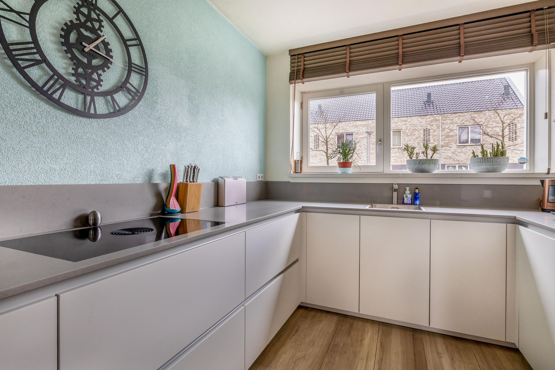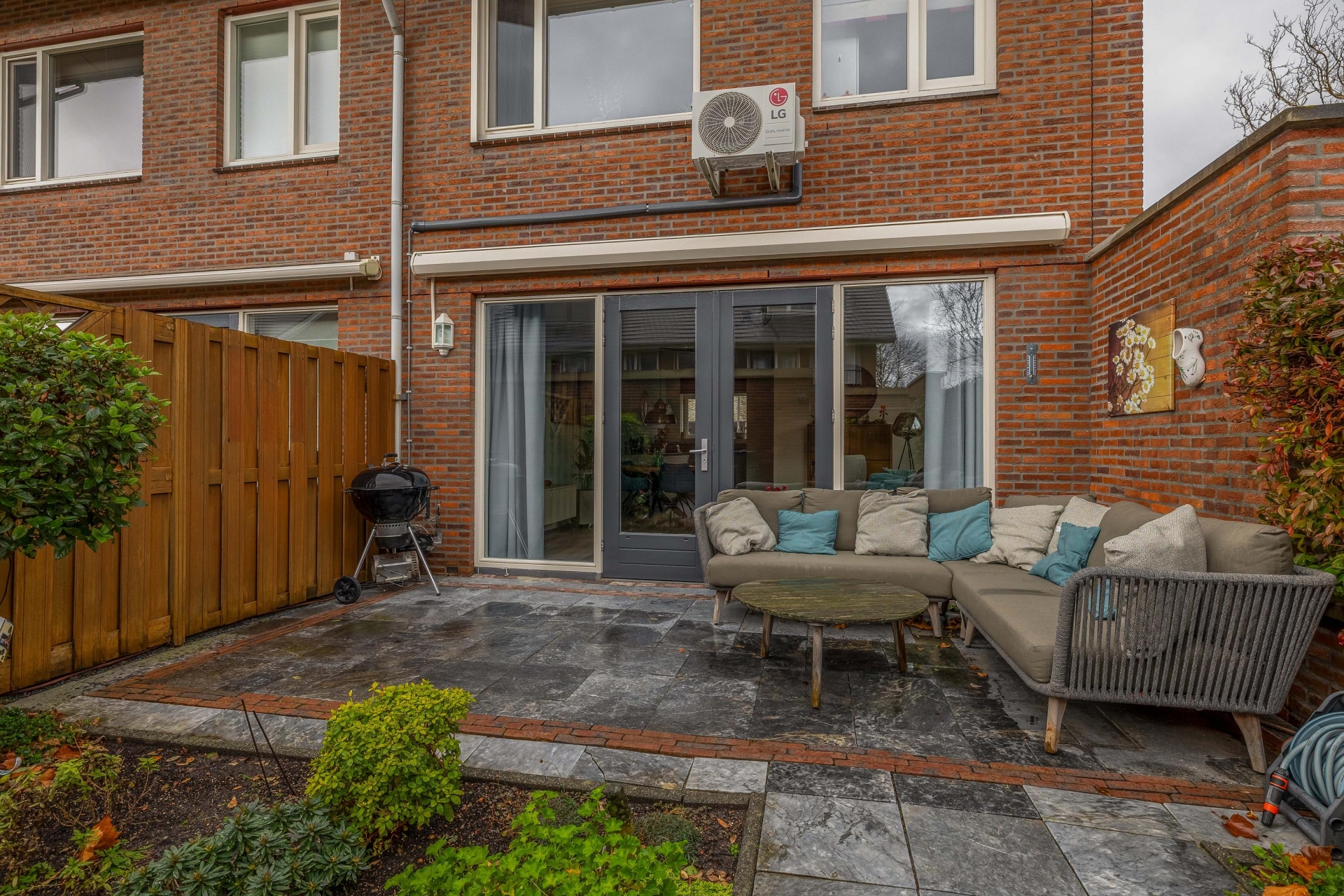 De achtertuin is keurig verzorgd en ligt op het zuidoosten, ideaal voor wie graag buiten zit in de zon. De tuin biedt ruimte voor een loungeset of buitentafel en is voorzien van een stenen berging met elektra. Via de achterom bereik je de eigen parkeerplaats op afgesloten terrein. Extra fijn: doordat het een hoekwoning is, heb je nét wat meer privacy en lichtinval.