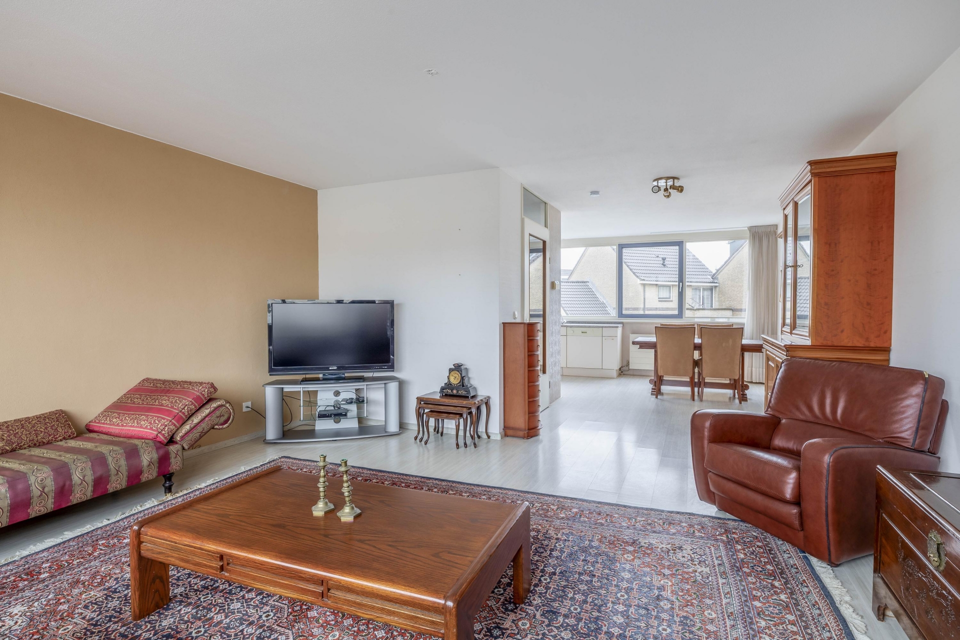 Deze living is opgedeeld in een woonkamer (29m²) en een half open keuken (12m²).