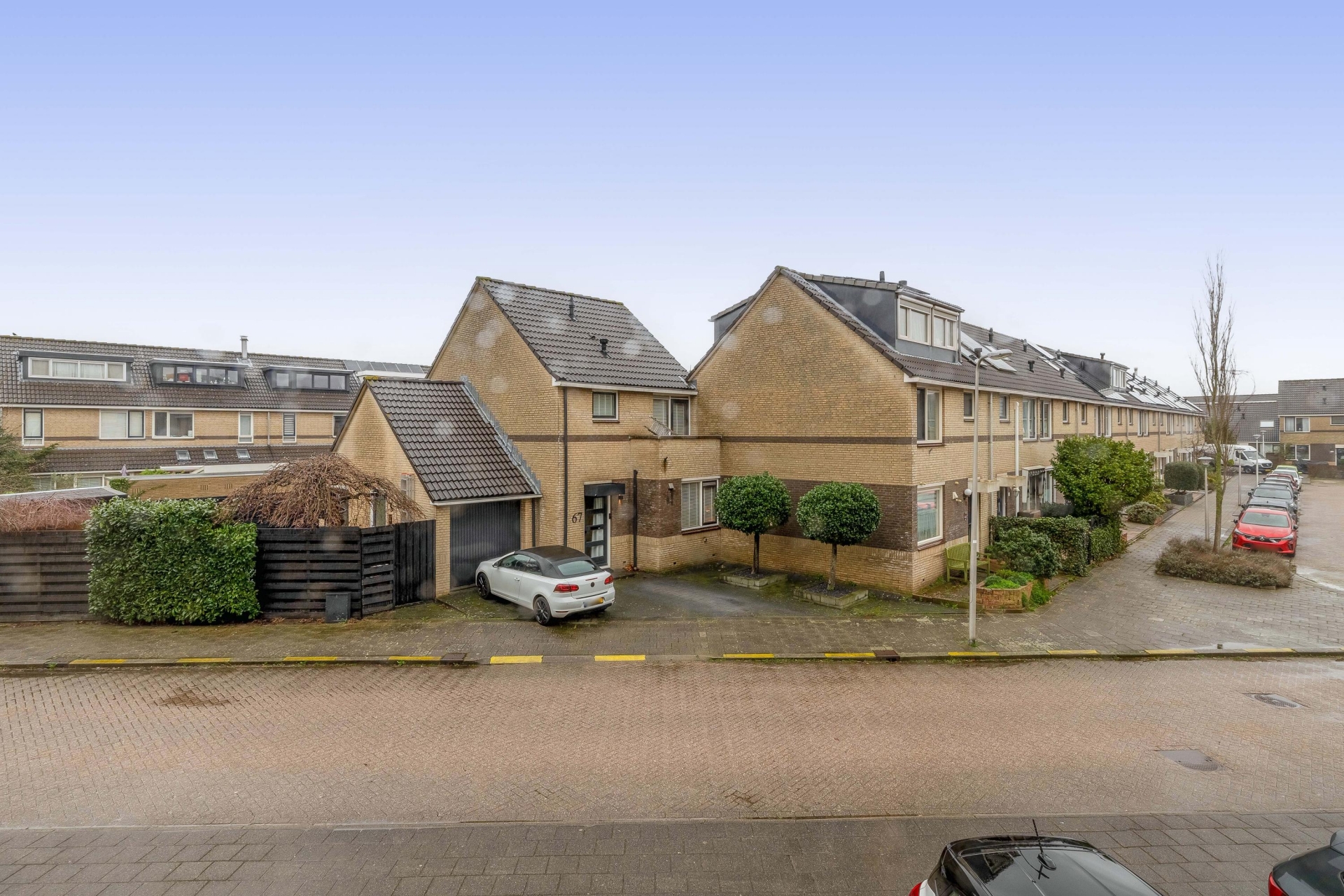 De voortuin (32m²) biedt ruimte voor het parkeren van de auto op eigen terrein.