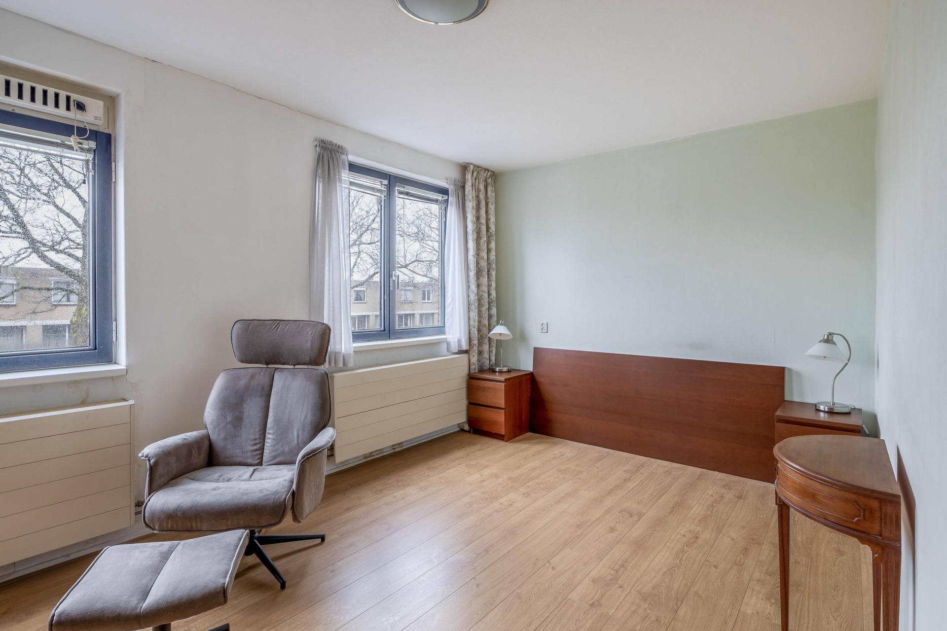 De 2 slaapkamers aan de voorzijde bieden zicht over de voortuin.