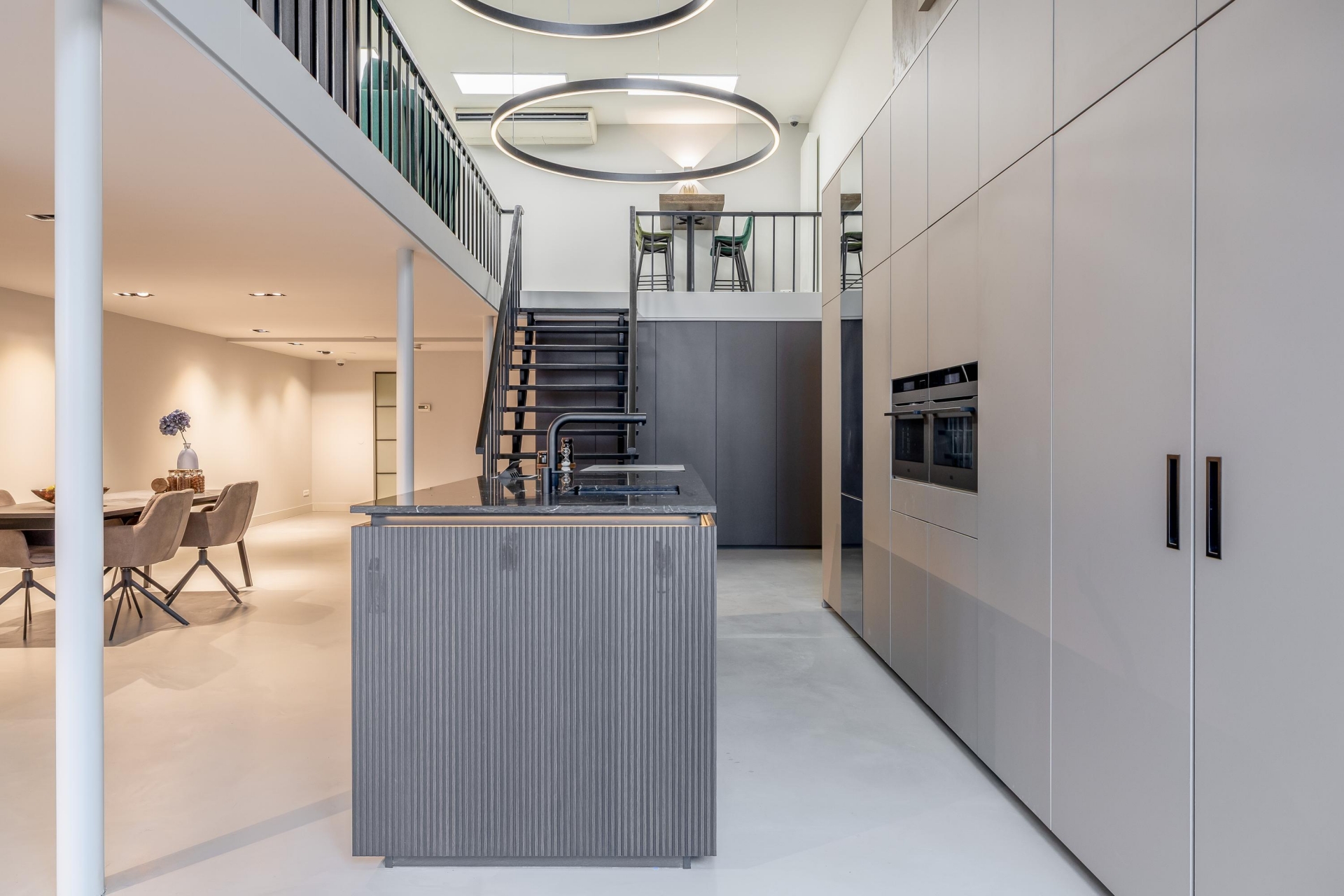 De 1e verdieping is een fraaie open vide en kan gebruikt worden als slaapkamer maar kan ook nog gesplitst worden.