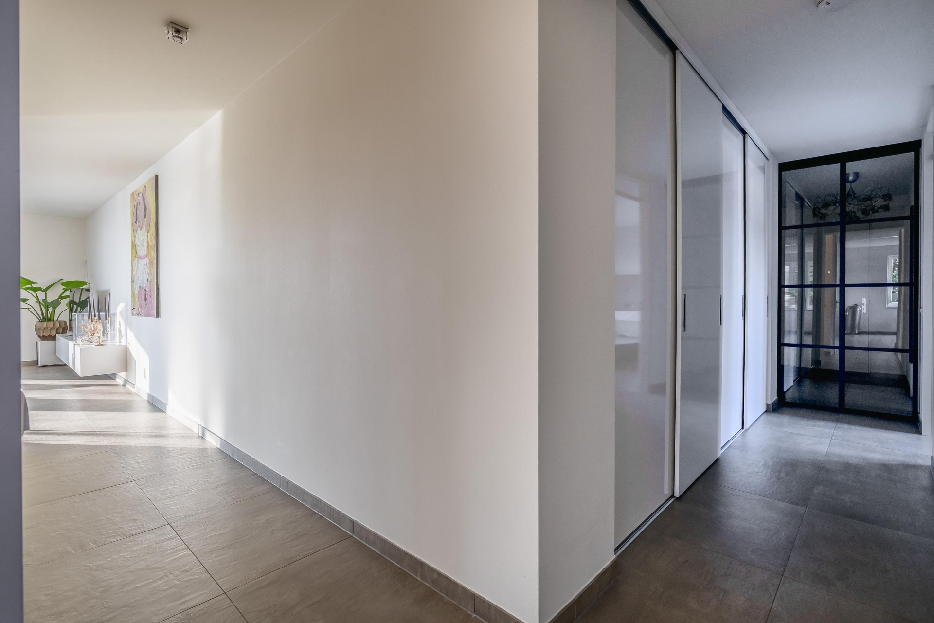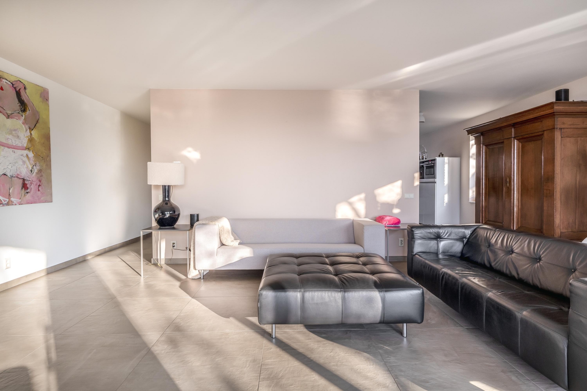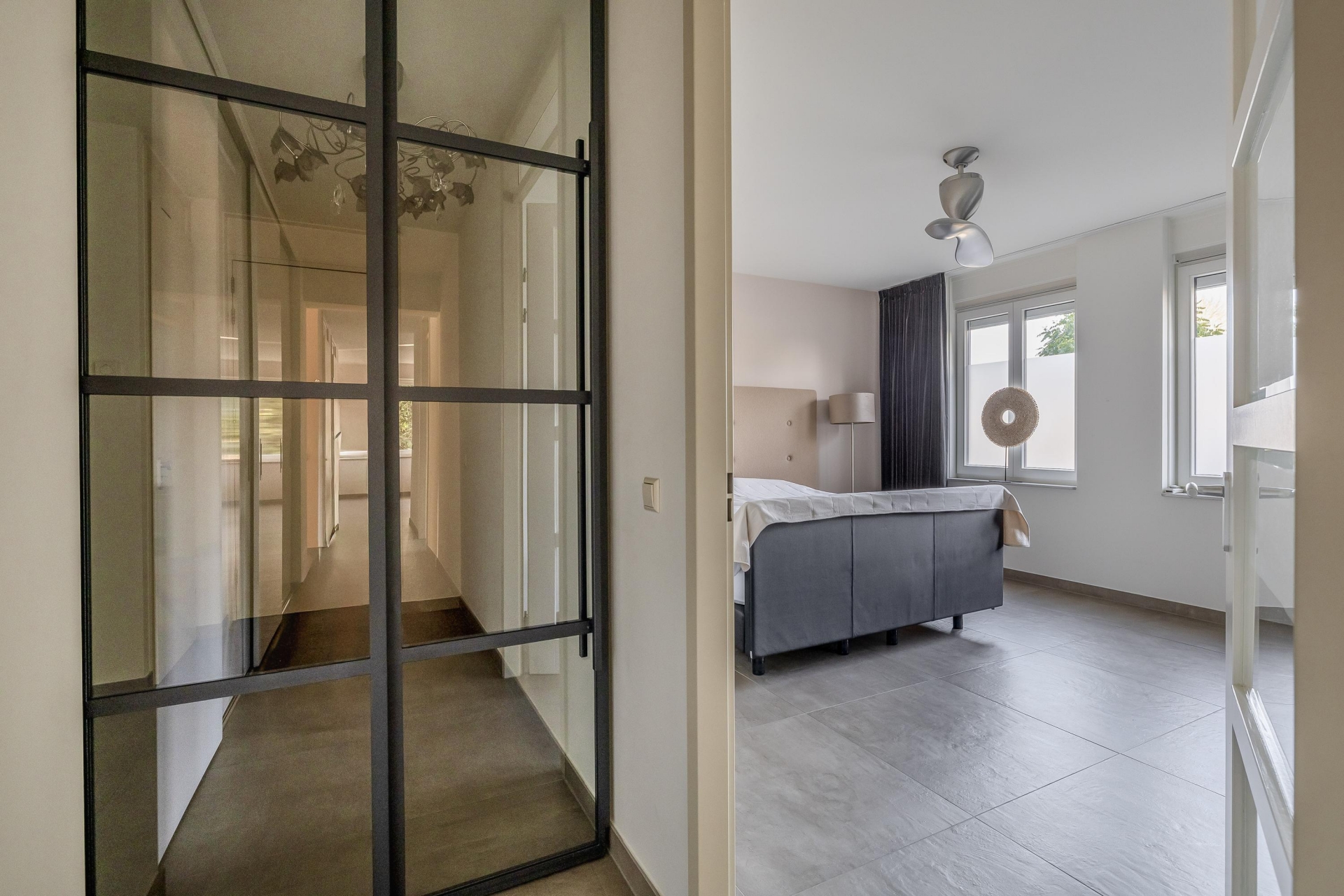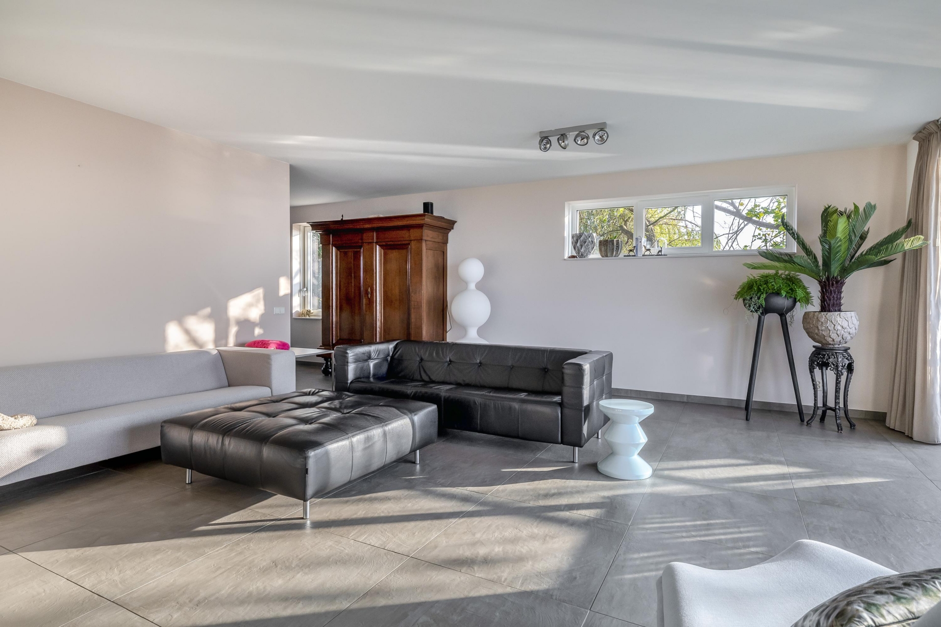 De afwerking is strak en warm tegelijk: grote vloertegels, een ingetogen kleurenpalet en nette wandafwerking zorgen voor een luxe uitstraling. Dankzij de directe verbinding met het terras en het uitzicht op de rivier leef je hier net zo goed buiten als binnen.