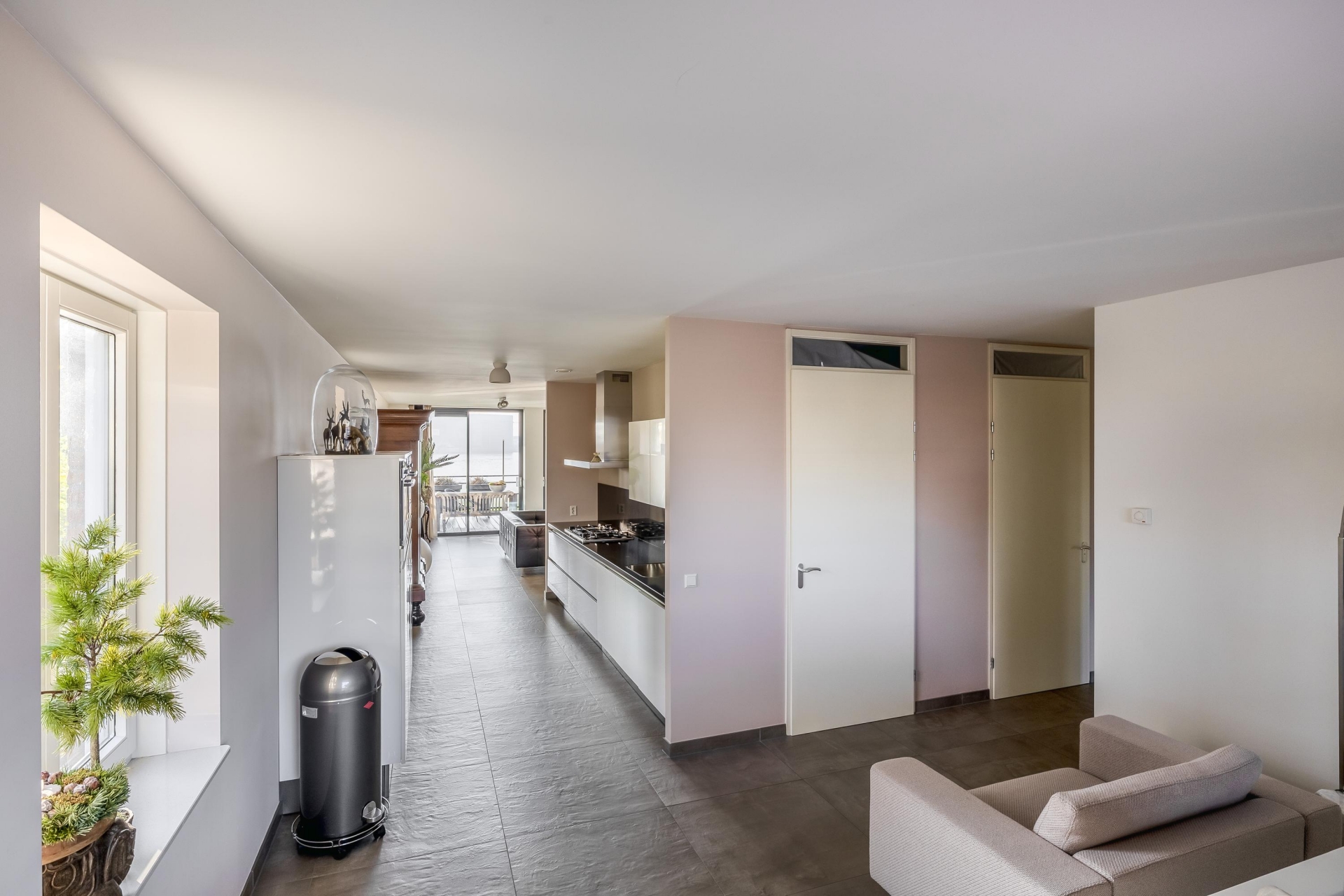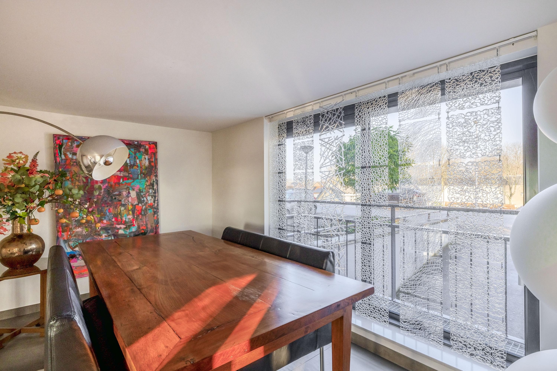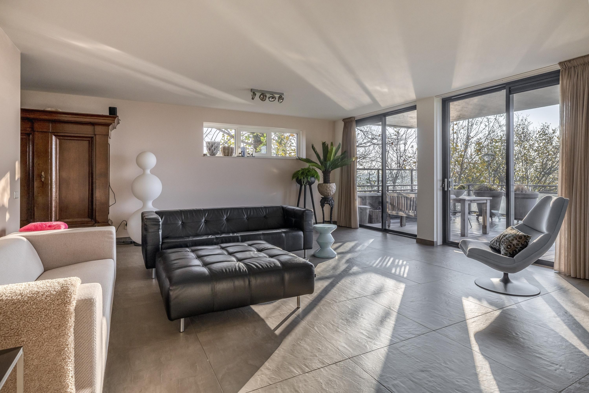 De living is licht en bijzonder ruim opgezet. De grote raampartijen aan de zuidzijde zorgen de hele dag voor een mooie lichtinval én zicht op het groen en het kabbelende water van de Lek. De verhoogde dininghoek geeft het geheel een speelse en architectonisch sterke indeling, waarmee deze ruimte zich echt onderscheidt van andere appartementen.