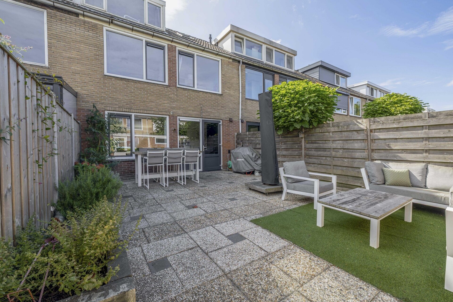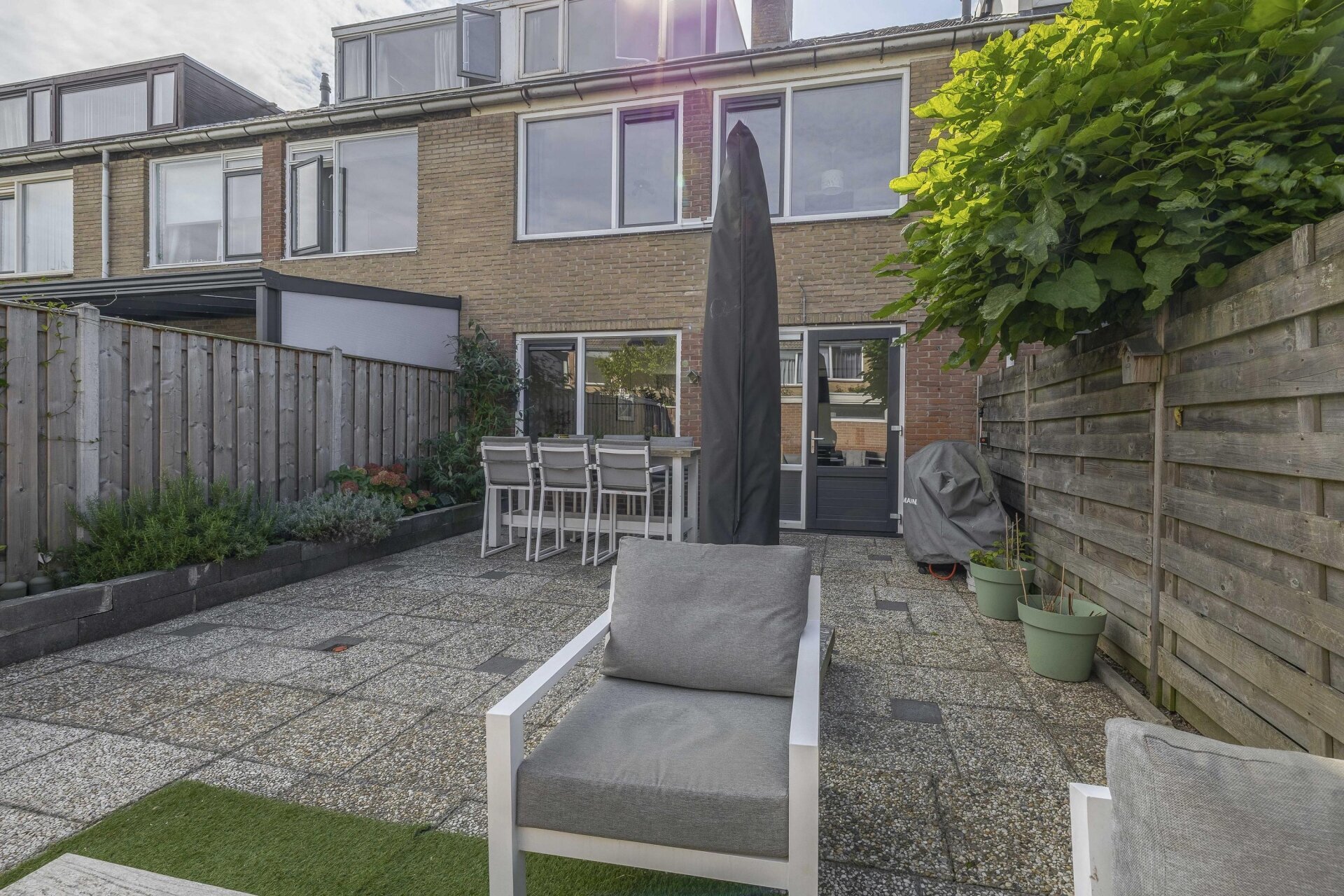 Aan de achterzijde vind je een zonnige tuin op het noordwesten – perfect om in de middag en avond te genieten van de zon. De tuin is onderhoudsvriendelijk aangelegd en biedt ruimte voor zowel een loungeset als een eettafel. Achterin staat een stenen berging, ideaal voor fietsen, gereedschap of extra opslag. Via een achterom is de tuin ook praktisch bereikbaar.