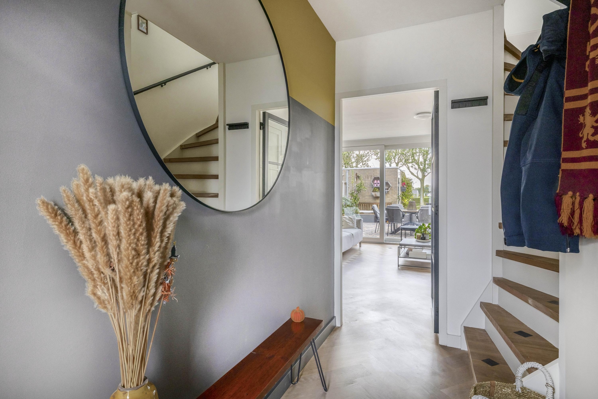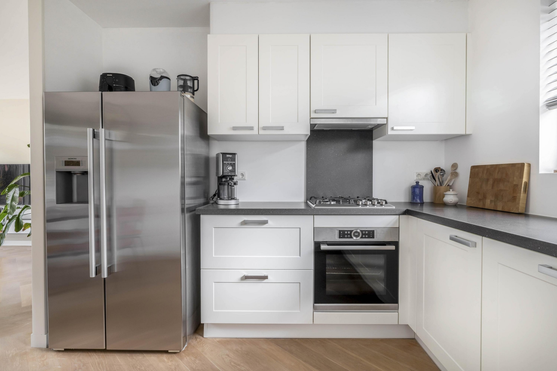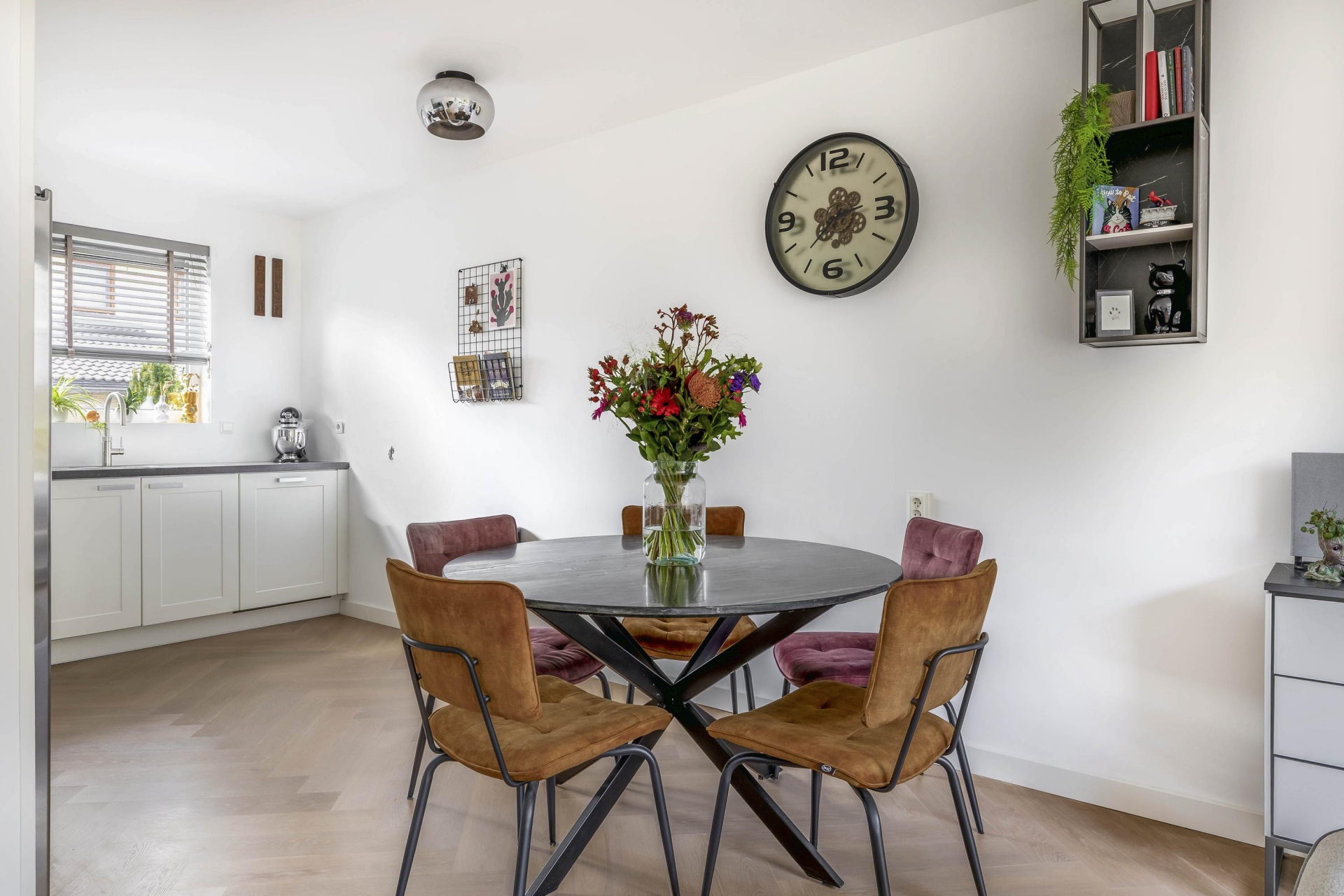 Bij binnenkomst valt direct op hoe netjes en eigentijds dit huis is ingericht. De begane grond is in 2020 voorzien van een prachtige parketvloer mét vloerverwarming. De lichte woonkamer biedt uitzicht op de tuin en is heerlijk ruim dankzij de kunststof schuifpui met HR+++ glas. De open keuken aan de voorzijde is in 2016 geplaatst en uitgerust met moderne inbouwapparatuur, een strak werkblad en voldoende opbergruimte.