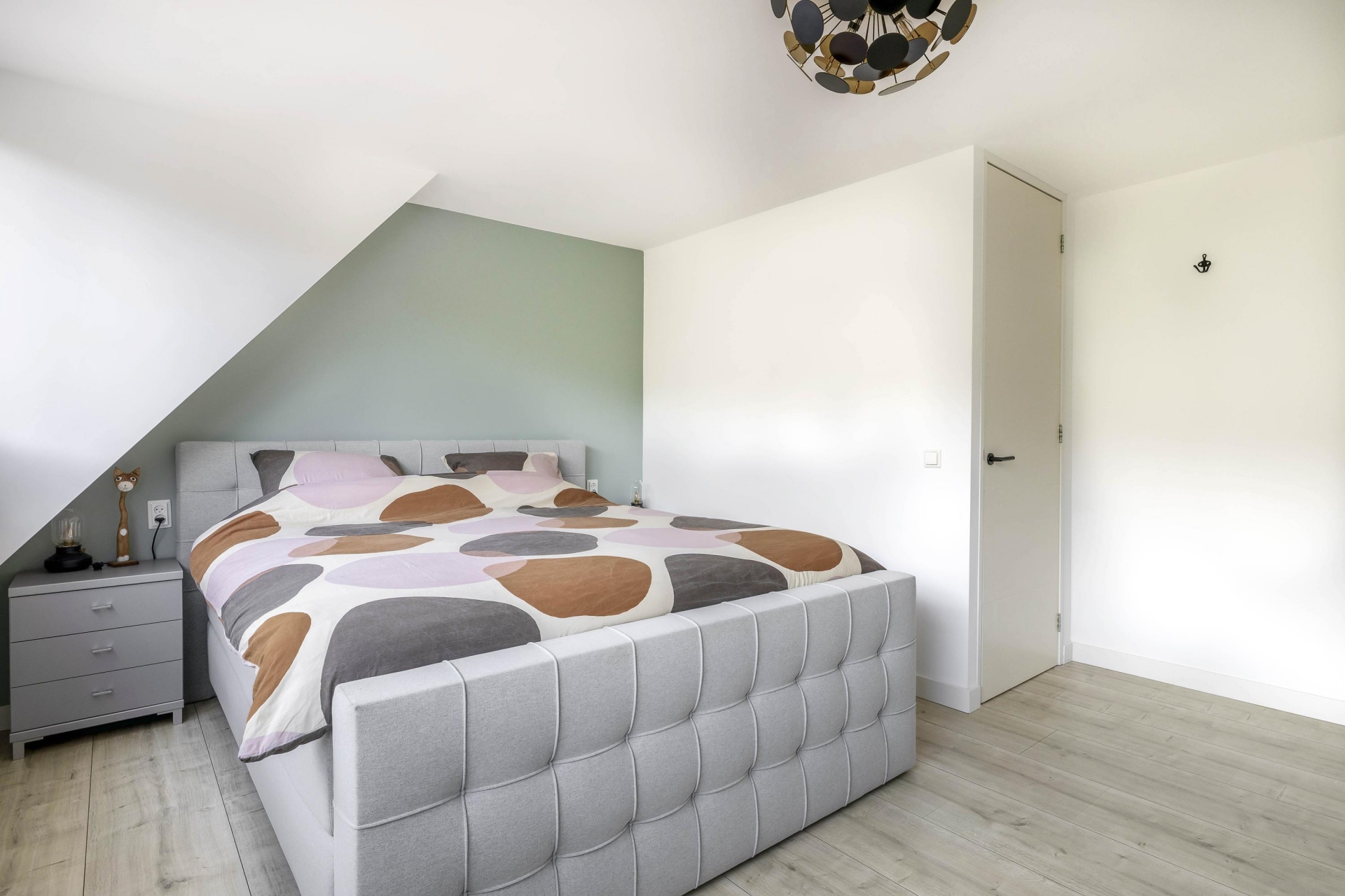 Ook de bovenverdiepingen zijn volledig aangepakt. De badkamer is in 2021 vernieuwd en uitgevoerd in een stijlvolle marmerlook met zwart sanitair. Hier vind je een ruime inloopdouche, wastafelmeubel met spiegel en een tweede toilet. Er zijn drie slaapkamers, waarvan twee zeer ruim. Oorspronkelijk waren dit er vier, maar de huidige eigenaren hebben gekozen voor meer ruimte en comfort. Een kunststof dakkapel aan de achterzijde vergroot de bovenverdieping en zorgt voor extra licht.