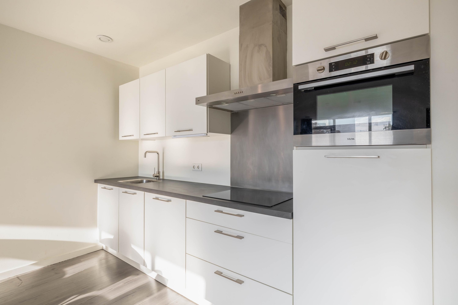 De keuken is modern en voorzien van inbouwapparatuur, hier kook je met plezier een snelle maaltijd na werk of juist uitgebreid in het weekend. De open opstelling zorgt voor een goede verbinding met de leefruimte. Ook fijn: het hele appartement is instapklaar en voorzien van een eigentijdse afwerking. Denk aan strakke wanden, een nette vloer en een airconditioning voor een comfortabel binnenklimaat, het hele jaar door.