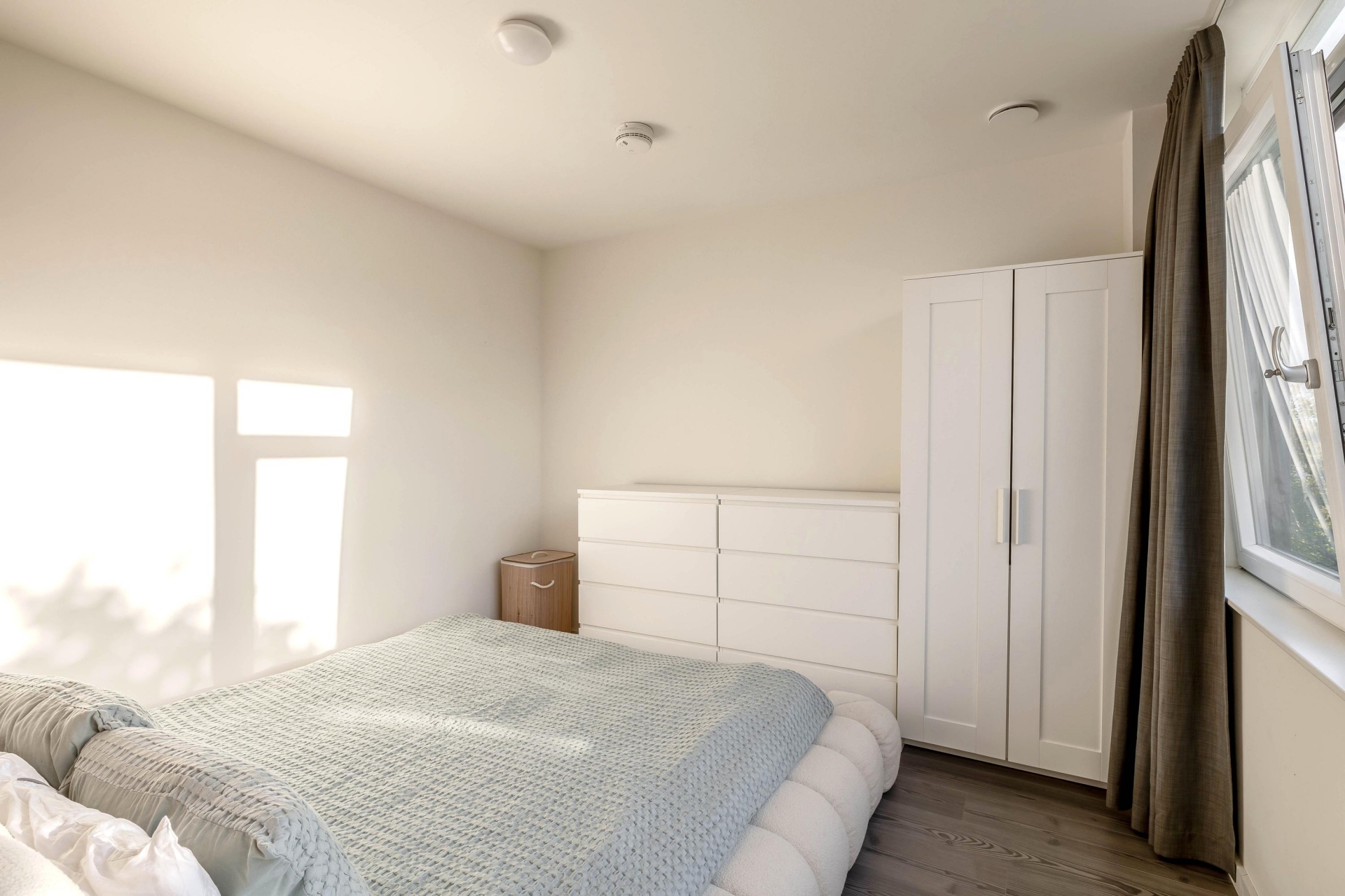 De woning beschikt over twee kamers, waarvan één ruime slaapkamer die voldoende plek biedt voor een groot bed en kastruimte. De badkamer is netjes, compact en voorzien van alles wat je nodig hebt. Door de slimme indeling en de hoeveelheid daglicht die binnen komt voelt het appartement ruim aan.