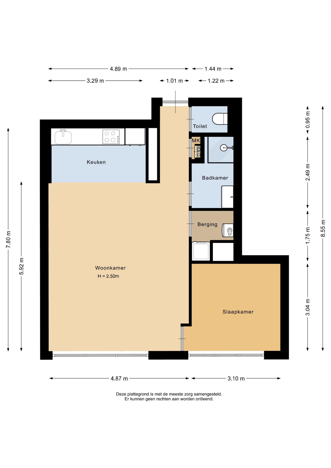“Deze informatie is door ons met de nodige zorgvuldigheid samengesteld. Onzerzijds wordt echter geen enkele aansprakelijkheid aanvaard voor enige onvolledigheid, onjuistheid of anderszins, dan wel de gevolgen daarvan. Alle opgegeven maten en oppervlakten zijn indicatief.”