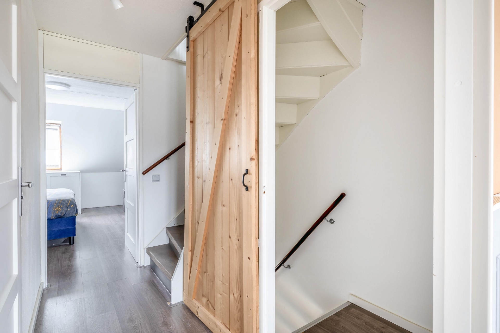 Overloop met toegang tot twee slaapkamers, een waskast, CV-kast en de opbergvliering. De derde slaapkamer aan de voorzijde beschikt over een groot dakraam. De vierde slaapkamer aan de achterzijde is voorzien van een dakkapel met kunststof kozijnen.