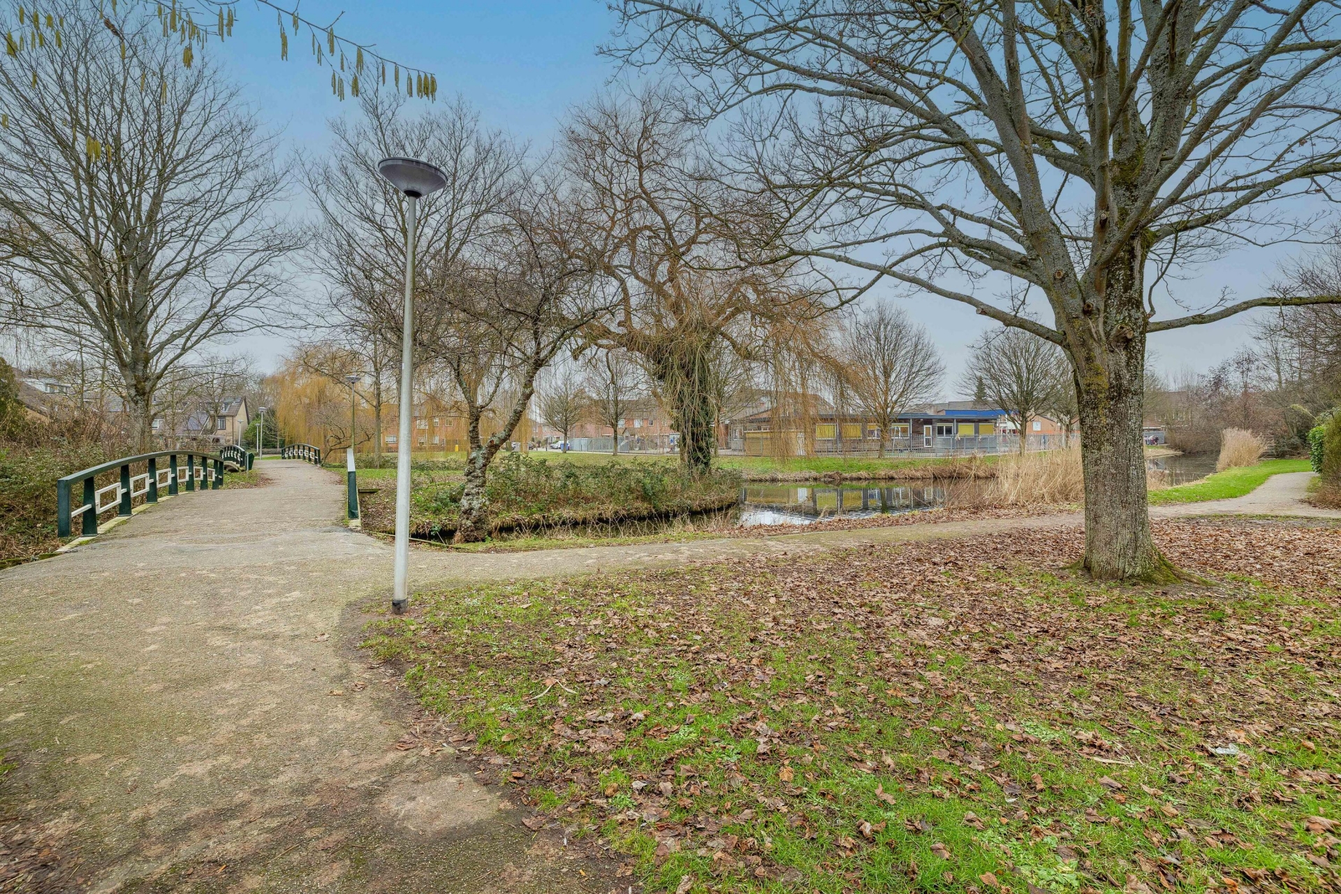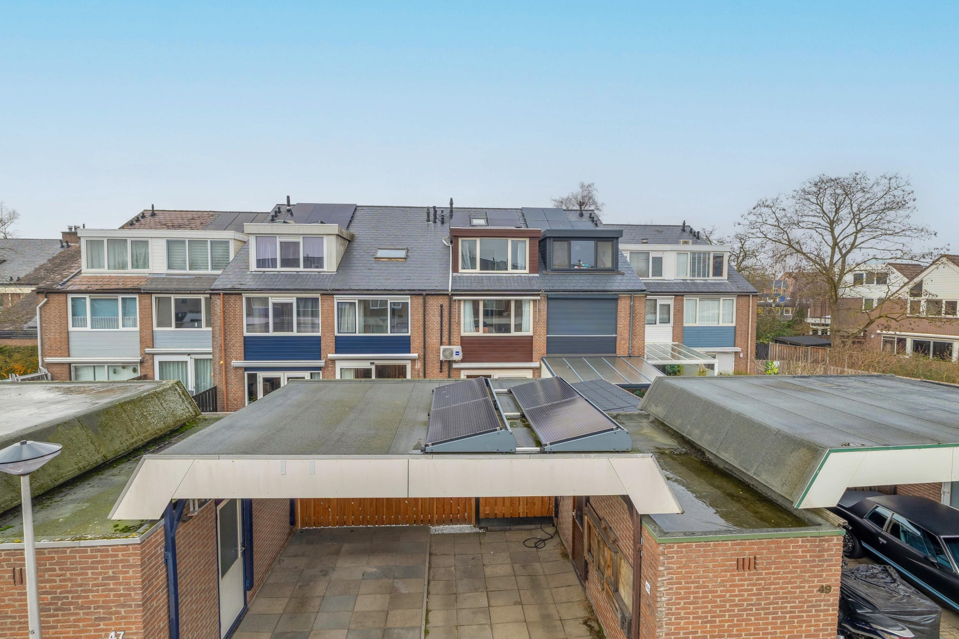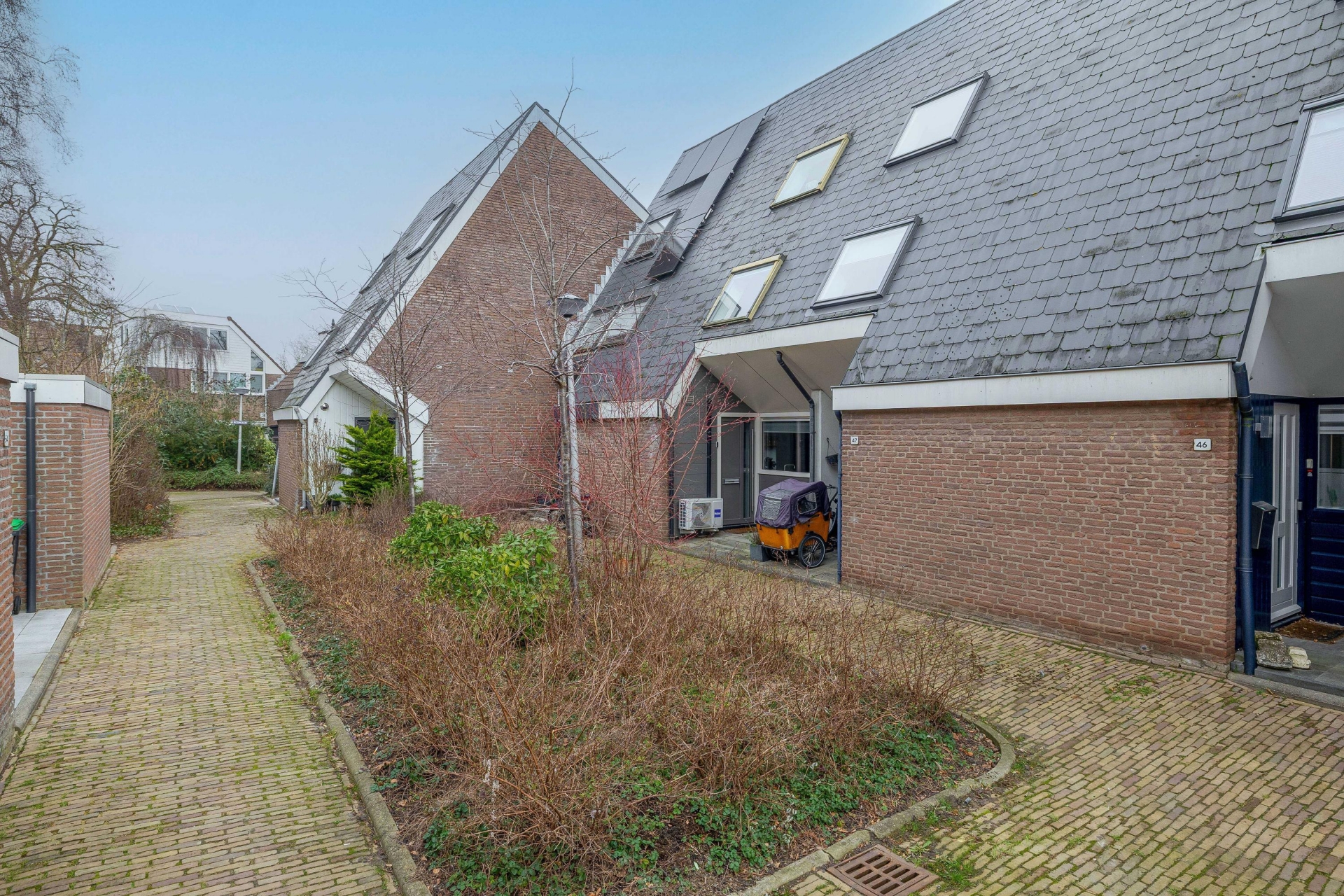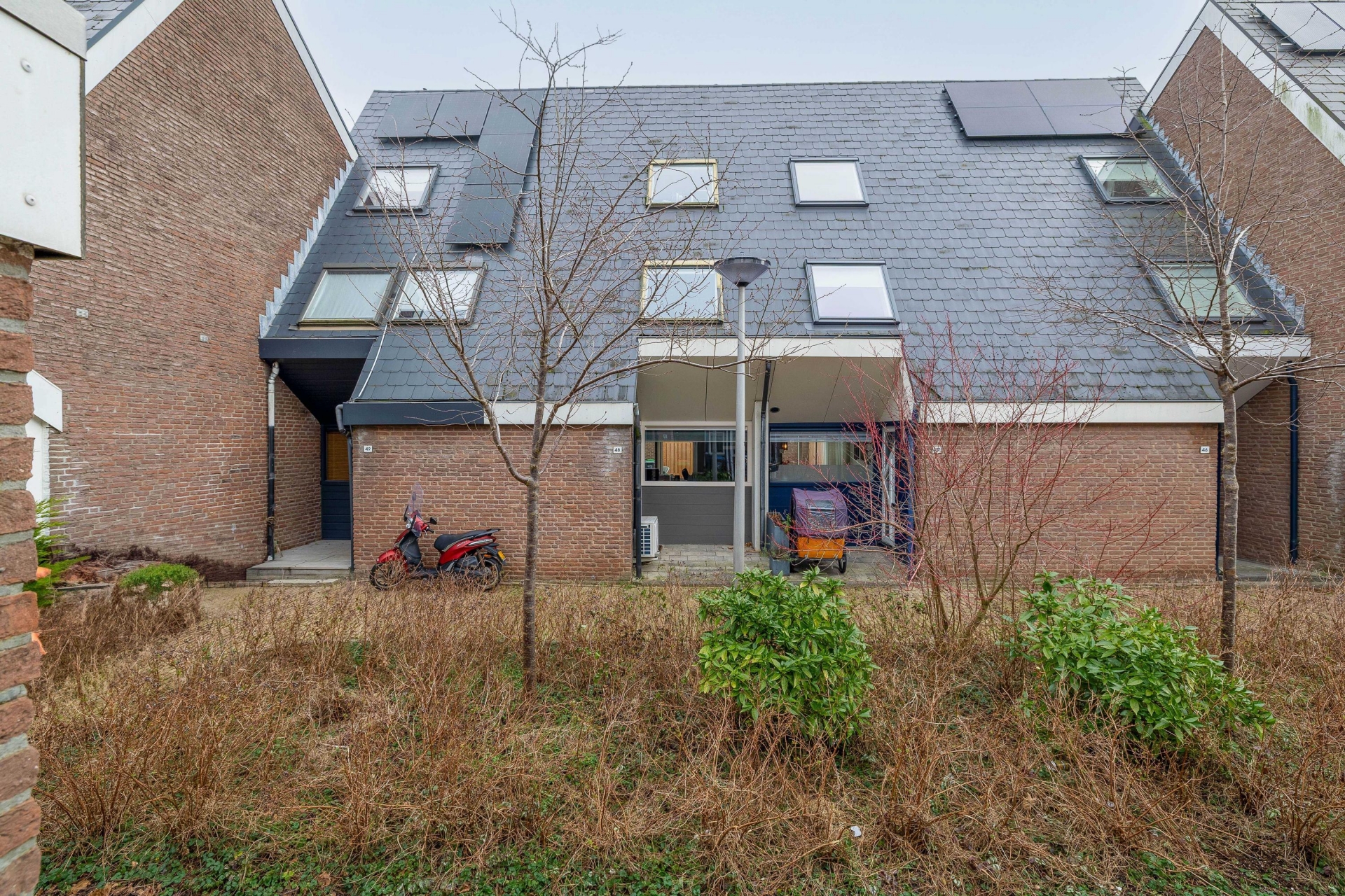Aan de voorzijde ligt de woning aan een rustig, hofje uitzonderlijk voor bestemmingsverkeer, wat het bijzonder geschikt maakt voor gezinnen met kinderen. De achtertuin op het zuidoosten biedt de hele dag door volop zon en is onderhoudsarm aangelegd met recent vernieuwde houten schuttingen. Zowel op de begane grond als op de eerste verdieping zijn elektrische zonneschermen aanwezig.