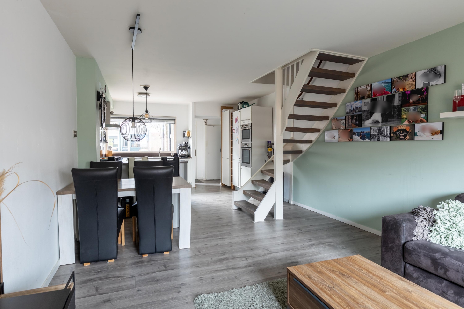 De ruime woonkamer is tuingericht en beschikt over een kunststof schuifpui naar de achtertuin. De open trap is volledig gerenoveerd, net als de trap naar de tweede verdieping. Het open contact met de keuken maakt deze leefruimte ideaal voor gezinnen of gezellige avonden met visite. De gehele begane grond is voorzien van een laminaatvloer met vloerverwarming.