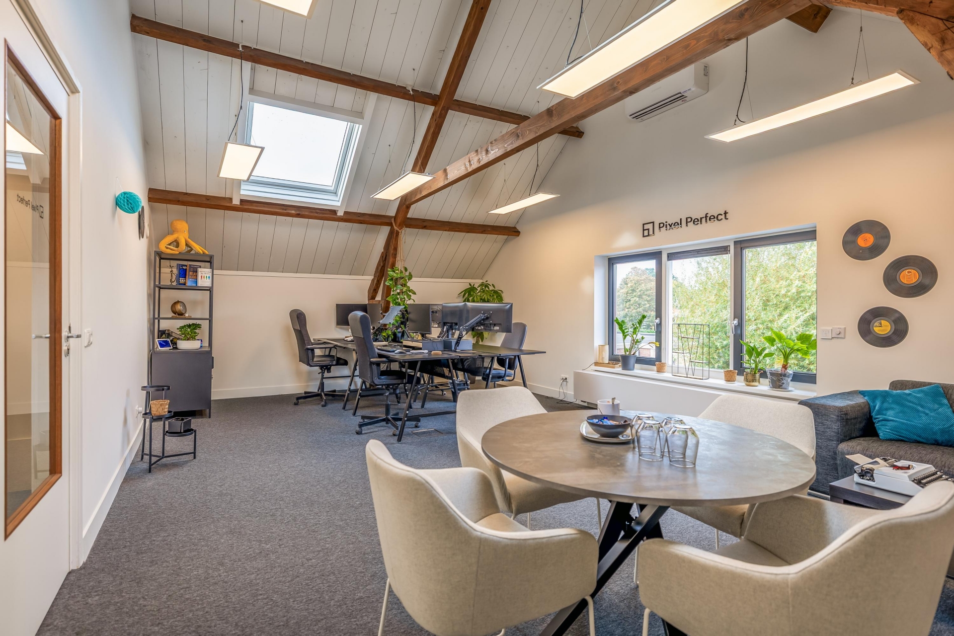 ’t Koetshuis is een pand dat opvalt – niet door zijn grootte, maar door zijn uitstraling. De robuuste bakstenen gevel, hoge ramen en authentieke kapconstructie geven het gebouw een stoere en professionele look. Achter die karakteristieke buitenkant vind je een kantoorruimte die in 2019 van top tot teen is vernieuwd. Denk aan strak afgewerkte muren, een comfortabele vloerafwerking, energielabel A+ en voorzieningen als airco, een pantry en een net toilet.
