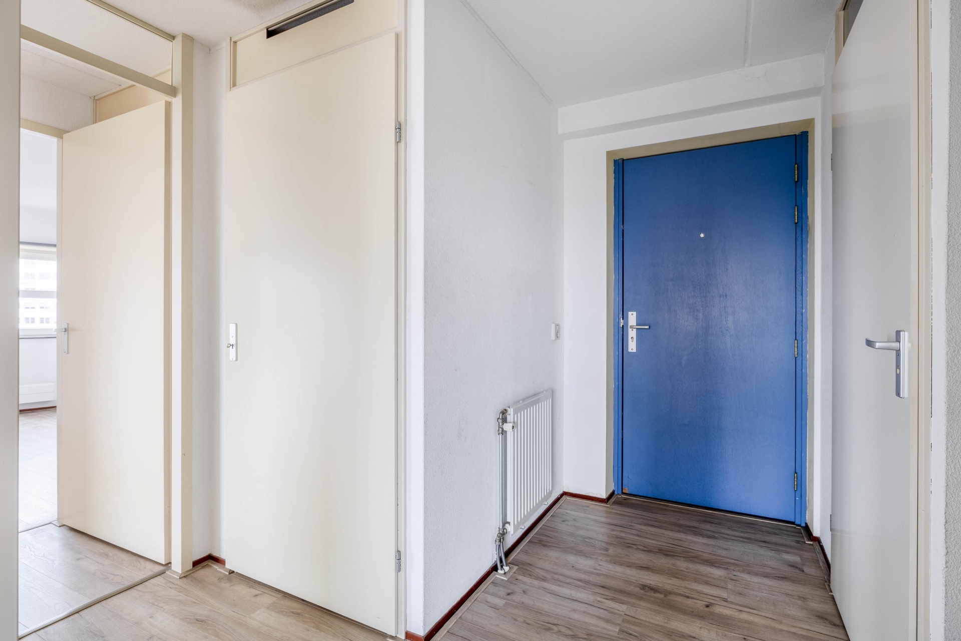 De slaapkamers zijn groter dan je misschien verwacht in een stadsappartement. Beide kamers bieden genoeg ruimte voor een tweepersoonsbed en extra meubels, zoals een grote kast of bureau. Handig voor wie thuis werkt of een logeerkamer wil. Verder is er een nette badkamer, een separaat toilet en een externe berging waar je met gemak je fiets of extra spullen kwijt kunt. Het complex is voorzien van een lift, zodat je moeiteloos op de 22e verdieping komt.