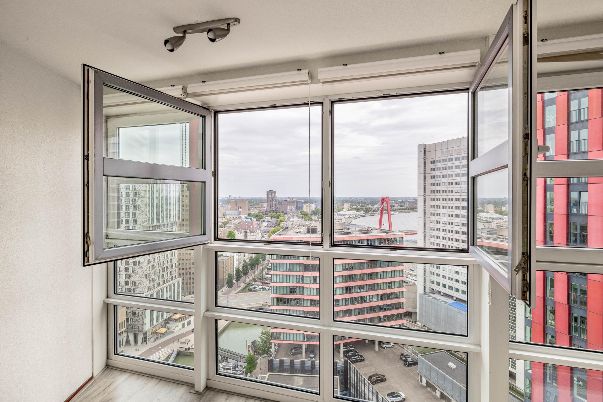 Welkom in dit lichte en ruime appartement op de 22e verdieping van De Waterstadtoren, een modern en herkenbaar complex aan de Wijnbrugstraat. Vanuit hier kijk je dagelijks uit over de stad en richting de iconische Willemsbrug – een uitzicht dat nooit verveelt. Dankzij de grote raampartijen aan de oostzijde geniet je van het ochtendlicht dat de woonkamer binnenvalt. Het appartement heeft een woonoppervlak van 74 m² en is slim ingedeeld, met twee royale slaapkamers en een ruime living met open keuken. Voor elke doelgroep kan dit dé perfecte plek worden om je te vestigen in het midden van het Maritieme district van Rotterdam. En voor wie niet bang is om zijn eigen stempel te drukken: hier kun je echt iets moois van maken.