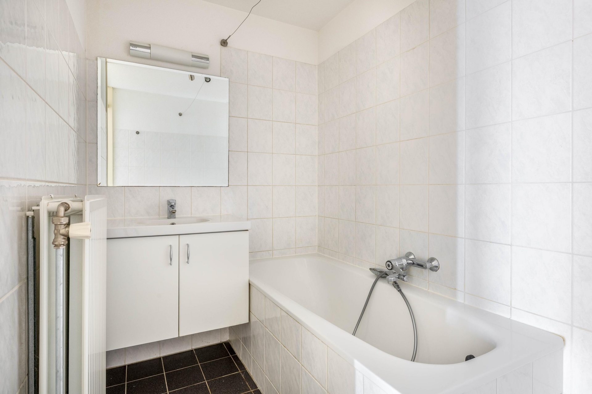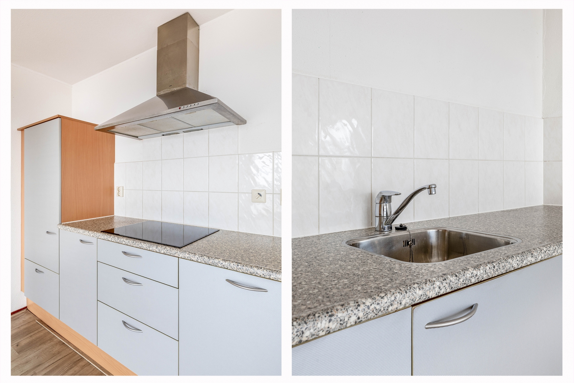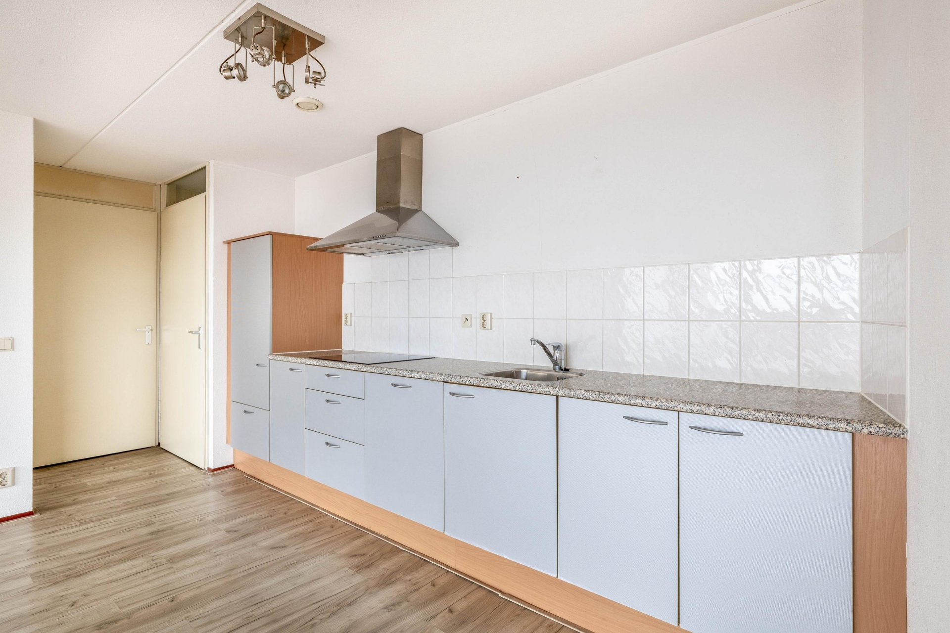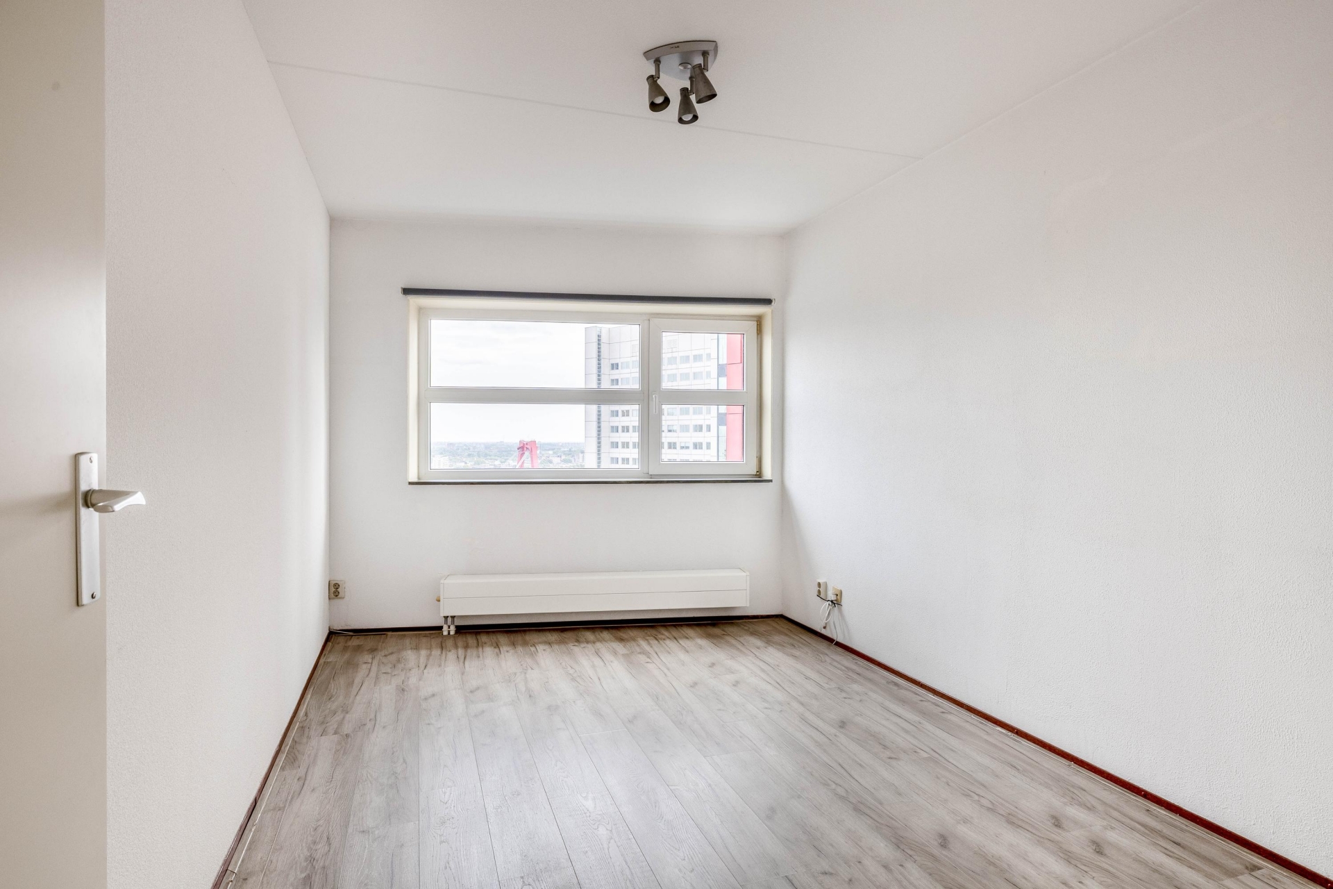 De woonkamer is het hart van het huis. De open indeling zorgt voor een ruimtelijk gevoel en maakt het makkelijk om verschillende hoekjes te creëren – een gezellige zithoek, een eethoek met uitzicht of misschien een werkplek aan het raam. De keuken is voorzien van een inductiekookplaat, afzuigkap en vaatwasser, en biedt volop mogelijkheden om naar eigen smaak te moderniseren. Dankzij de ligging op hoogte is het altijd rustig, ondanks dat je midden in het centrum woont. Geen balkon? Klopt – maar met zo’n panorama door de ramen voelt het alsof de stad je eigen voortuin is.