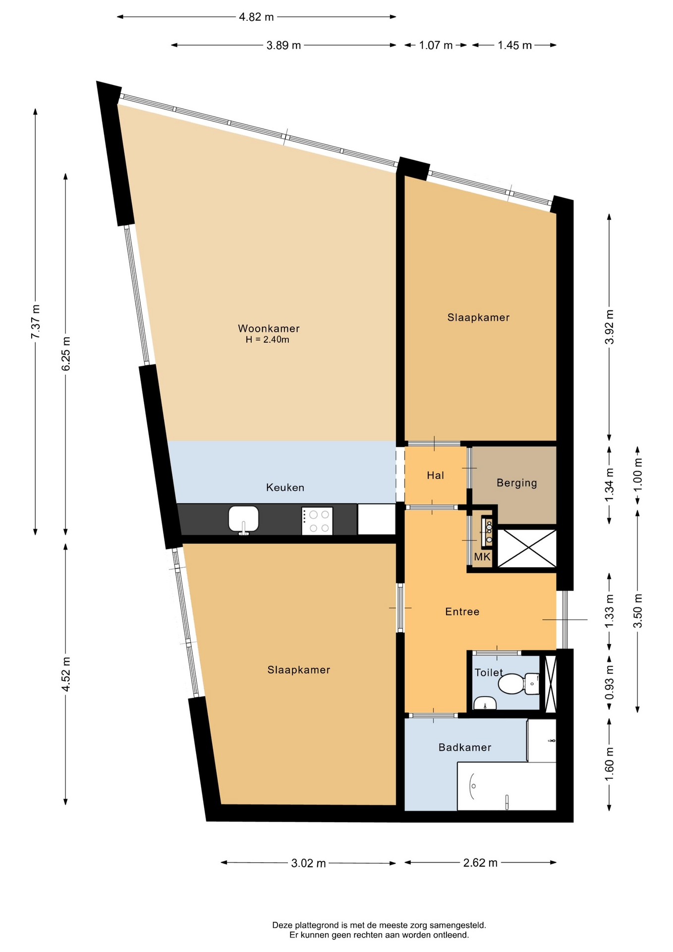 “Deze informatie is door ons met de nodige zorgvuldigheid samengesteld. Onzerzijds wordt echter geen enkele aansprakelijkheid aanvaard voor enige onvolledigheid, onjuistheid of anderszins, dan wel de gevolgen daarvan. Alle opgegeven maten en oppervlakten zijn indicatief.”
