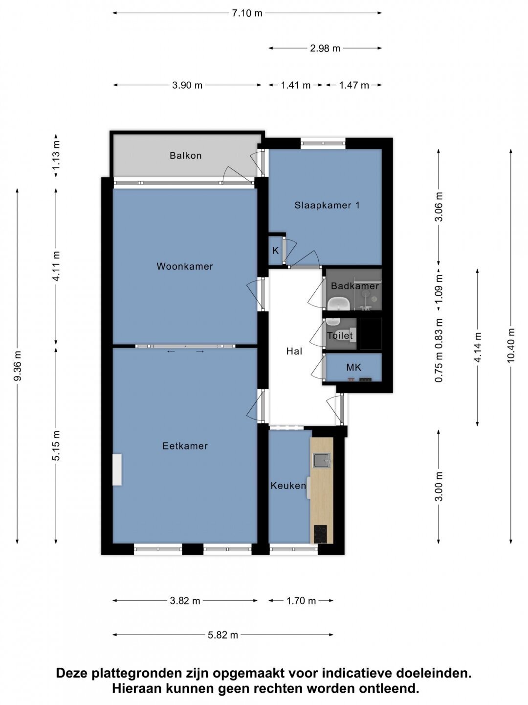 “Deze informatie is door ons met de nodige zorgvuldigheid samengesteld. Onzerzijds wordt echter geen enkele aansprakelijkheid aanvaard voor enige onvolledigheid, onjuistheid of anderszins, dan wel de gevolgen daarvan. Alle opgegeven maten en oppervlakten zijn indicatief.”