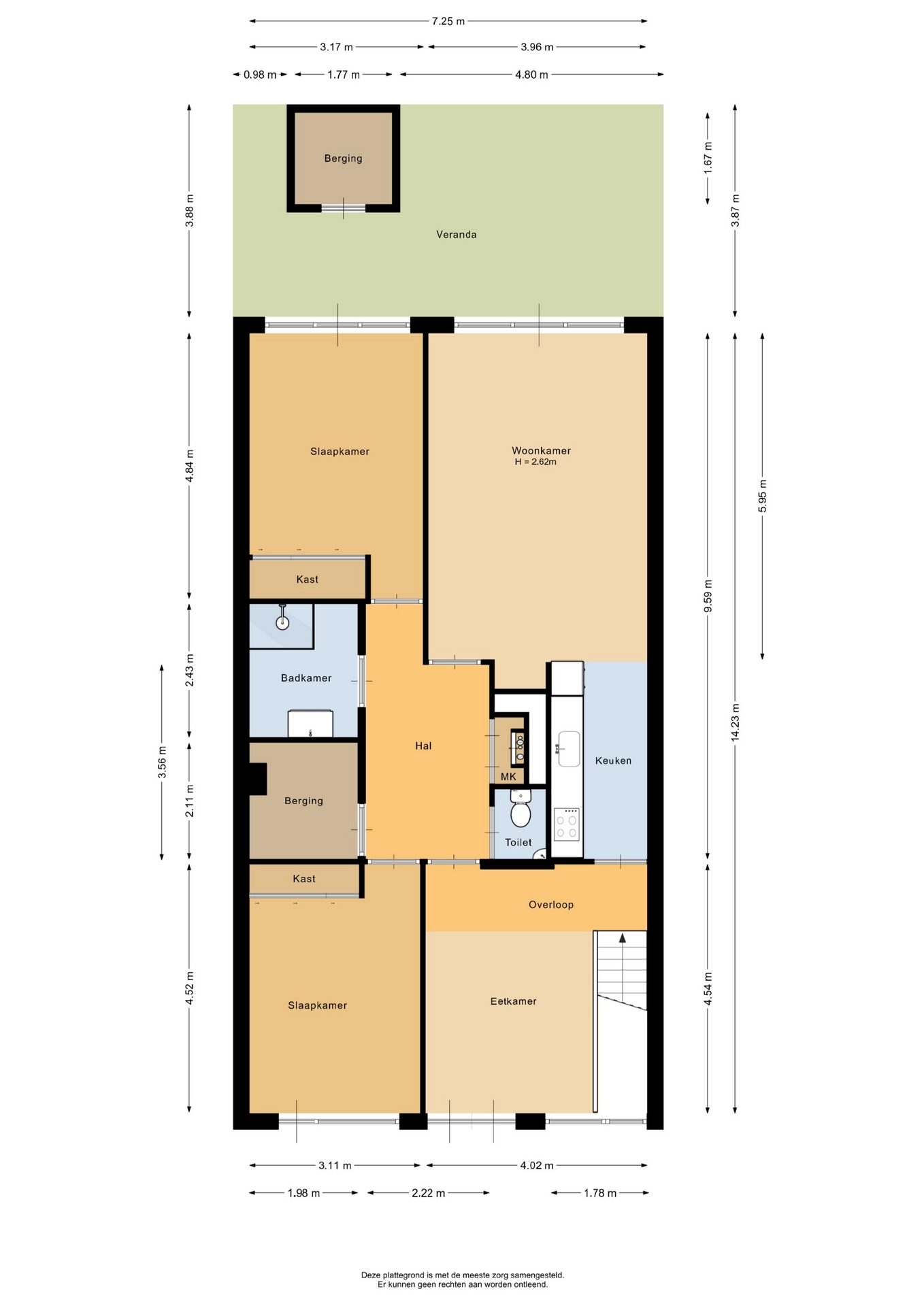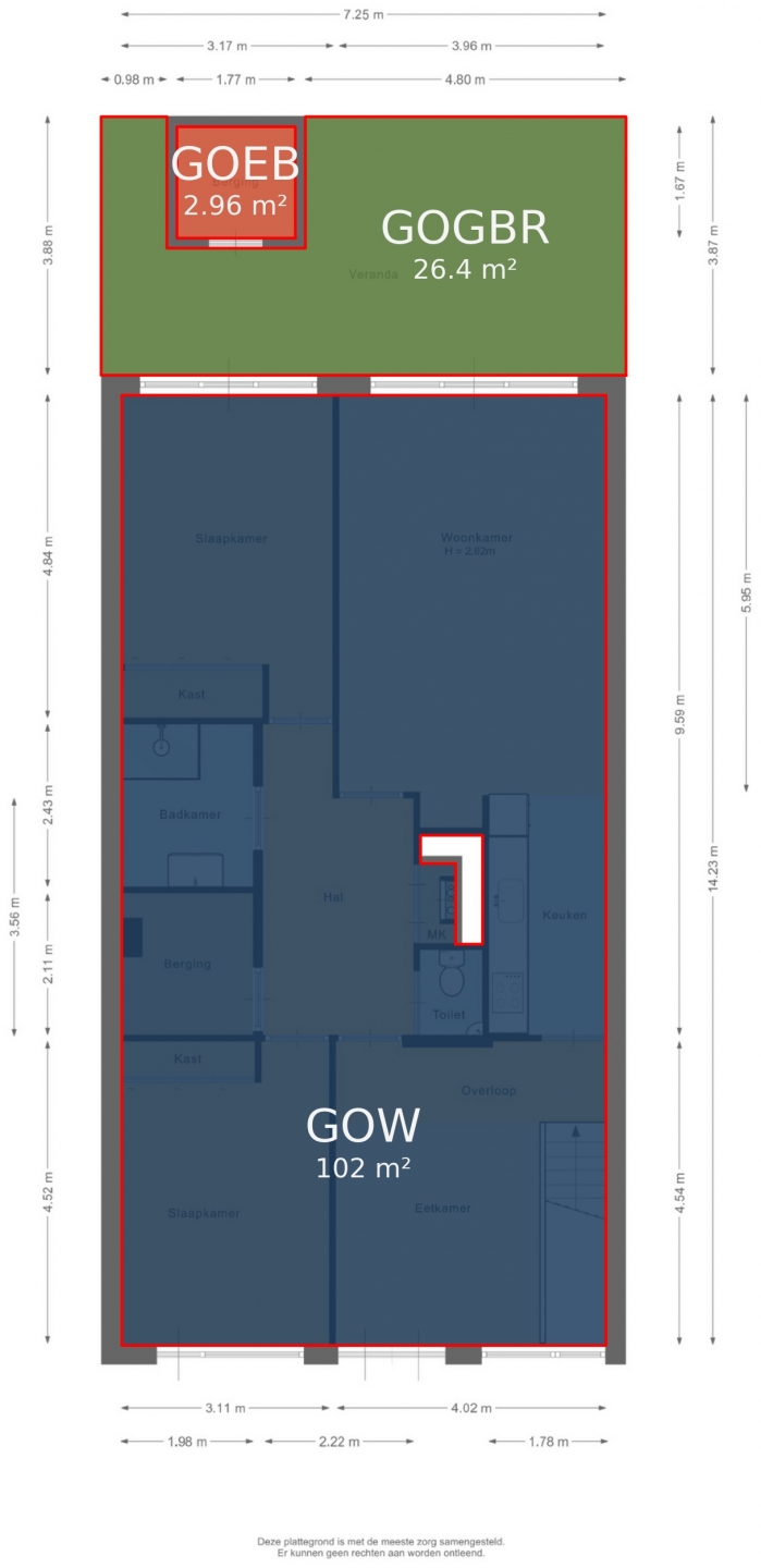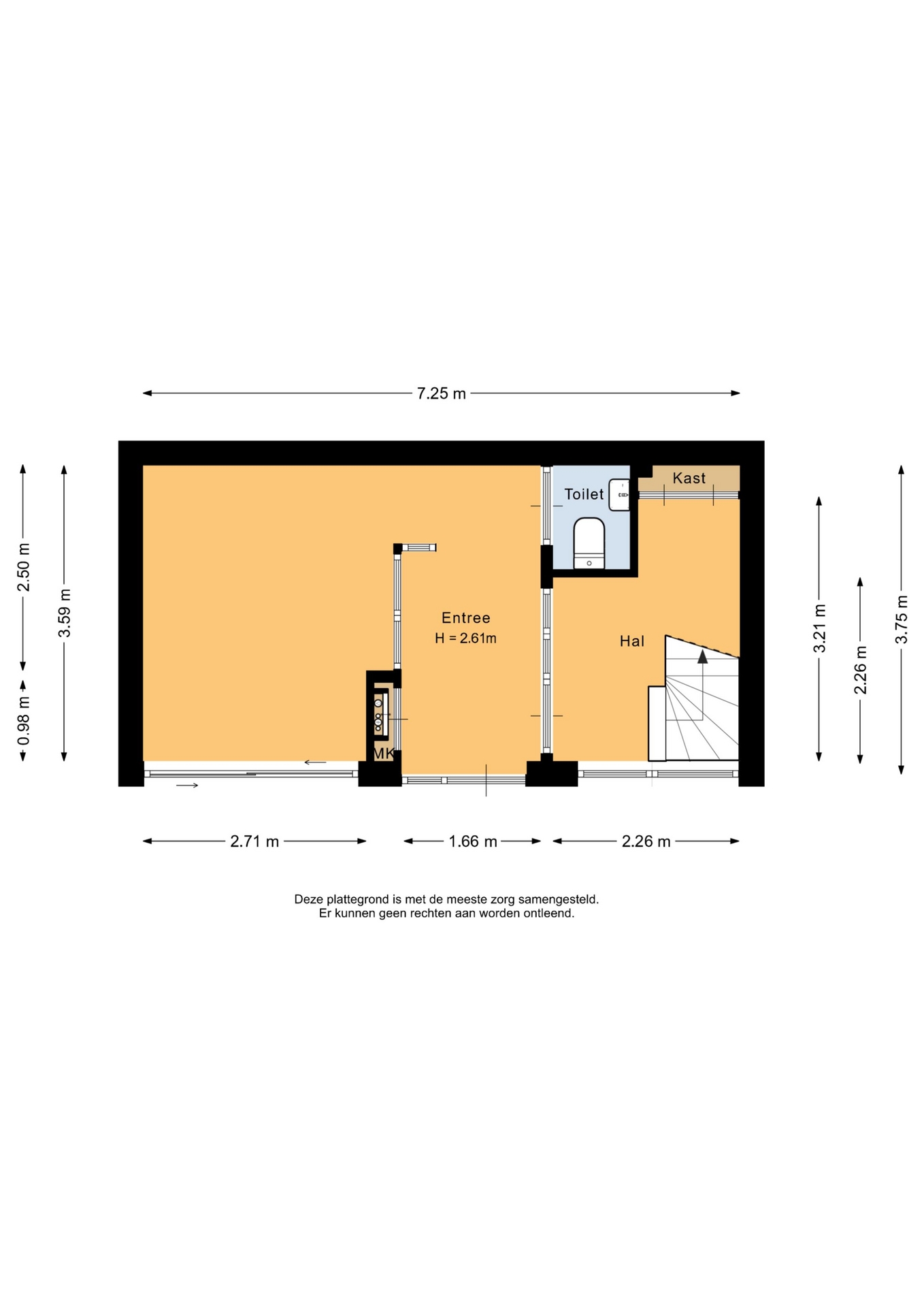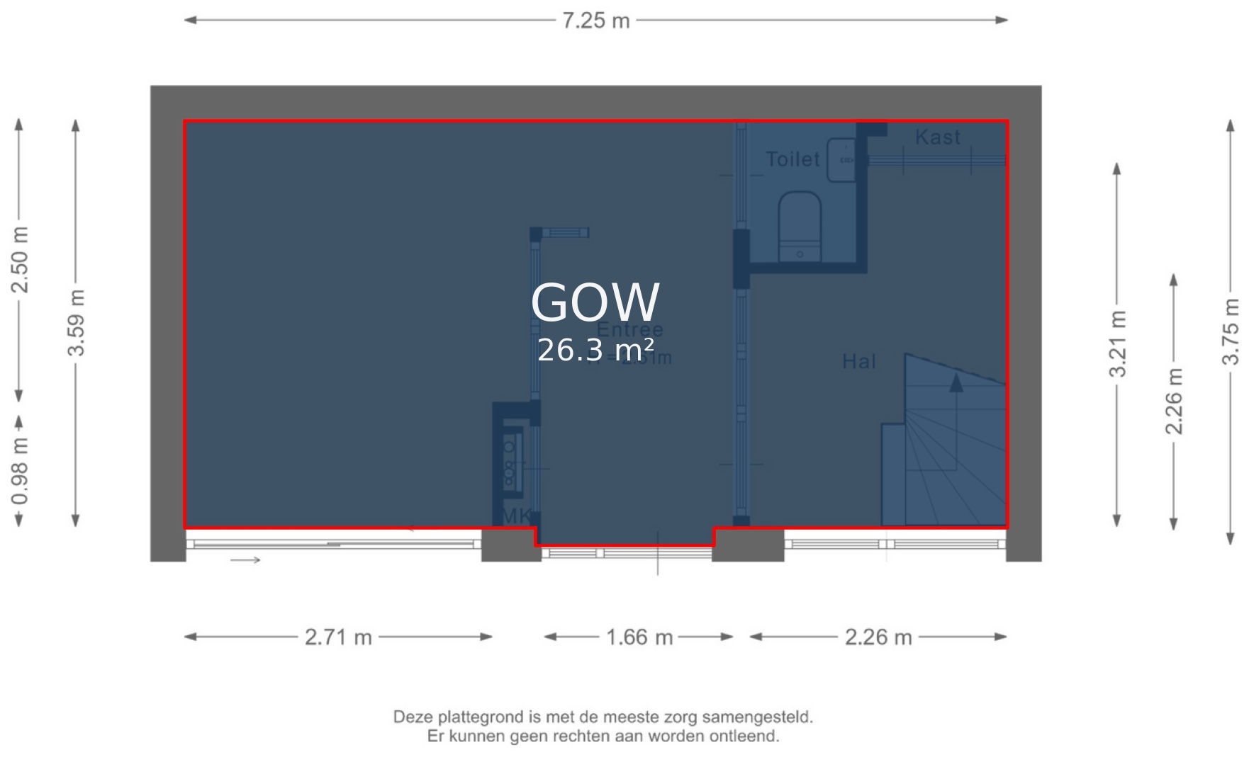 “Deze informatie is door ons met de nodige zorgvuldigheid samengesteld. Onzerzijds wordt echter geen enkele aansprakelijkheid aanvaard voor enige onvolledigheid, onjuistheid of anderszins, dan wel de gevolgen daarvan. Alle opgegeven maten en oppervlakten zijn indicatief.”