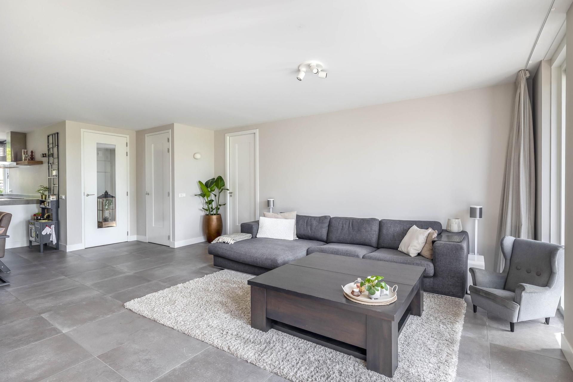 Zodra je de living binnenkomt valt de grote leefruimte direct op. De ruimte is modern en strak afgewerkt, met een warme sfeer. De zithoek is ruim opgezet en biedt voldoende plek voor een grote bank en een gezellige eethoek. Dankzij de open indeling loop je zo door naar de keuken en de tuin.